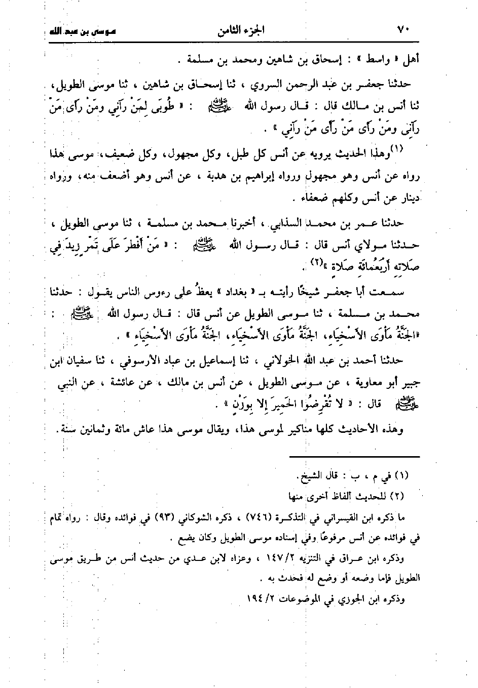 وهذه الأحاديث كلها مناكير لموسى هذا ويقال مُوسَى هذا عاش مِئَة وثمانين سنة