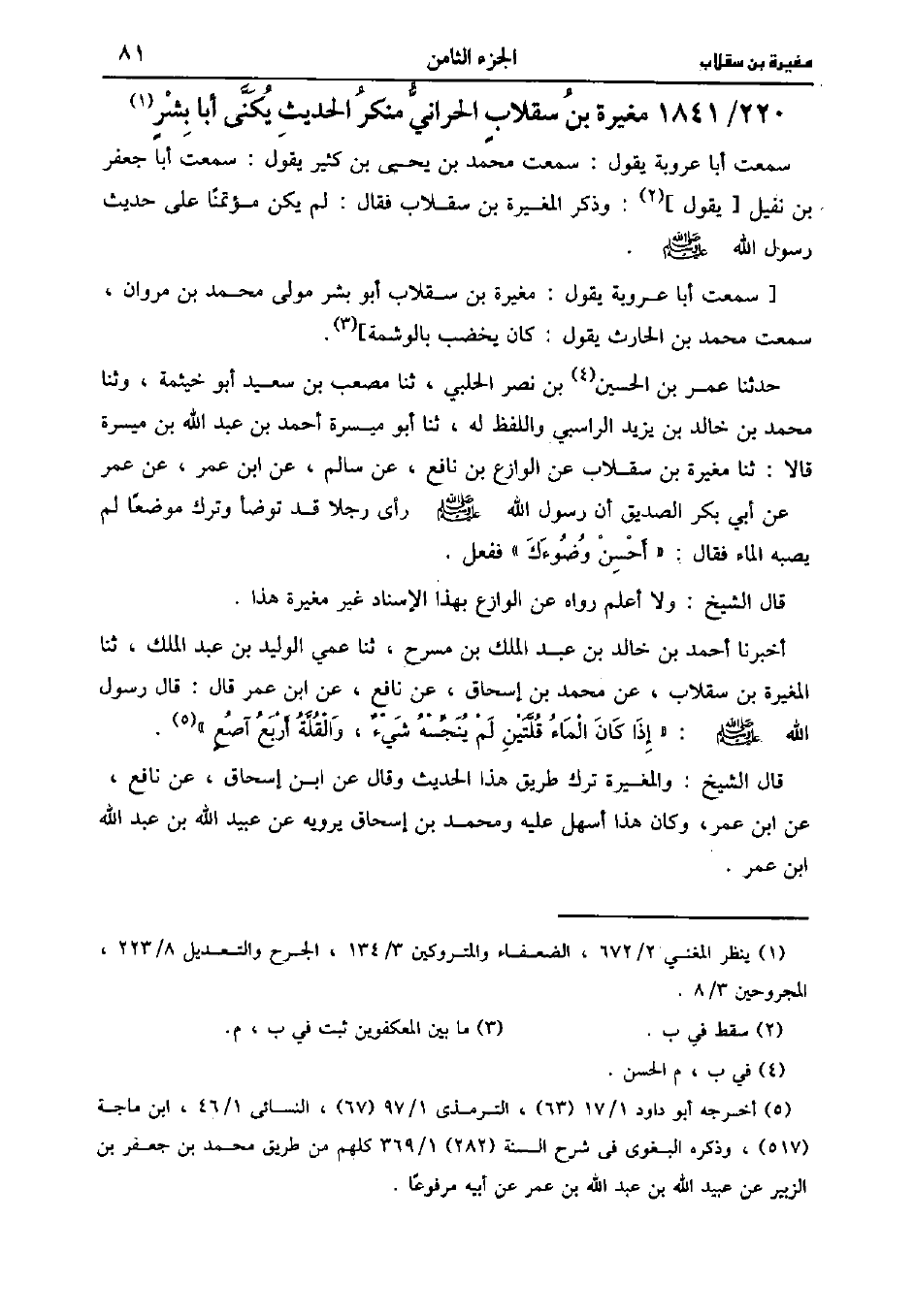 1841- مغيرة بْن سقلاب الْحَرَّانِيّ منكر الحديث، يُكَنَّى أَبَا بشر.
