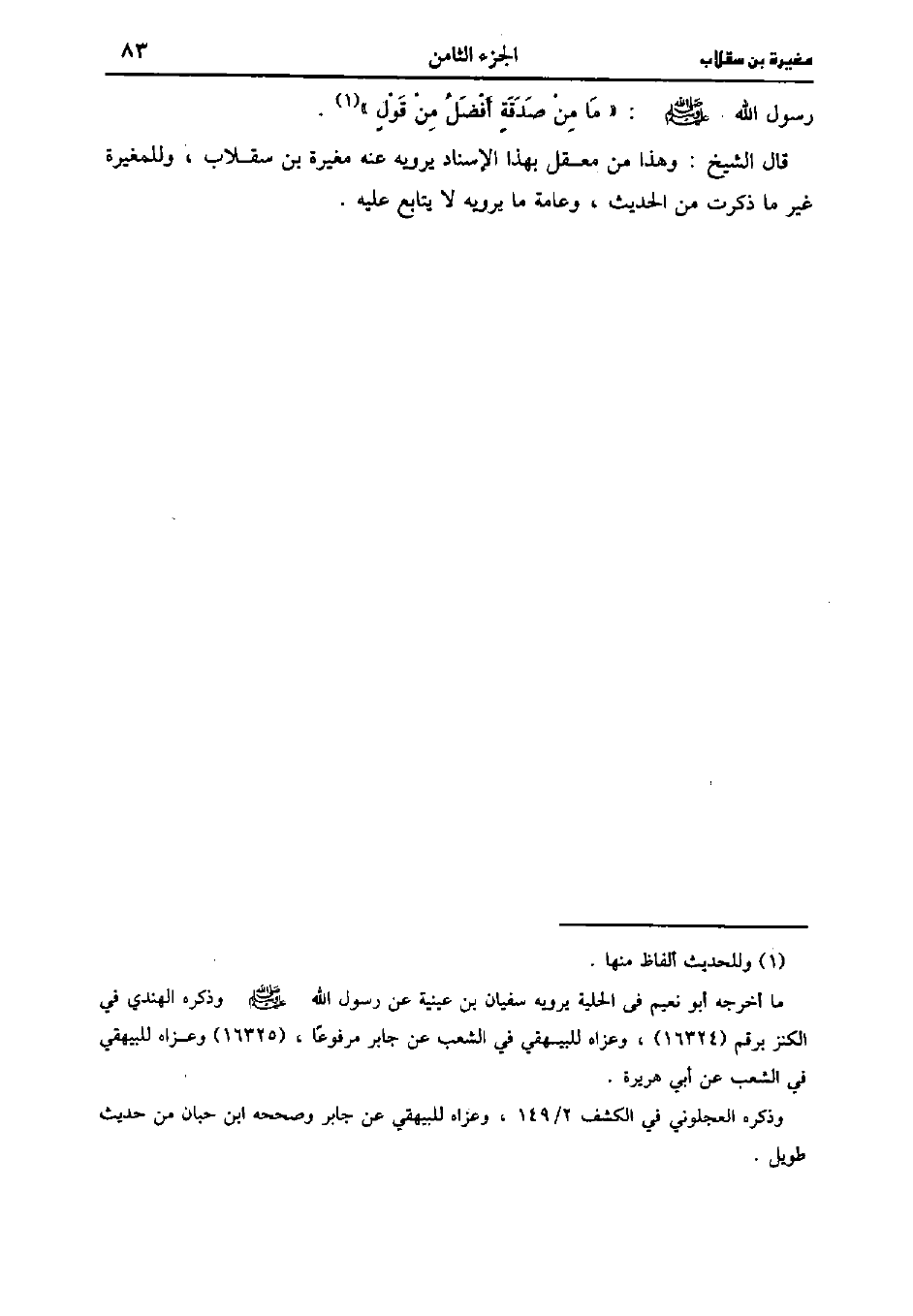 رَسُولِ اللَّهِ صَلَّى اللَّهُ عَلَيهِ وَسلَّمَ مَا مِنْ صَدَقَةٍ أَفْضَلُ مِنْ قَوْلٍ.