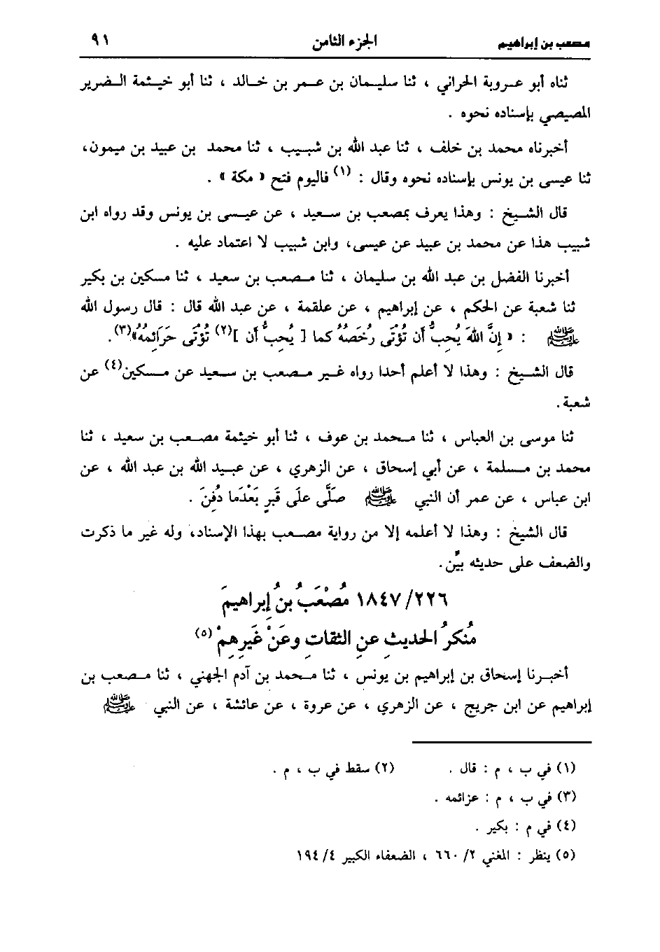 قَالَ الشَّيْخ: وهذا لا أعلمه إلاَّ من رواية مصعب بهذا الإسناد وله غير ما ذكرت والضعف عَلَى حديثه بين.