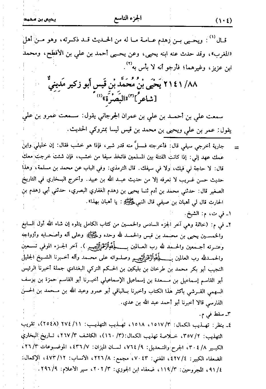 2141- يَحْيى بن مُحَمد بن قيس أبو زكير مديني شاعر البصرة.