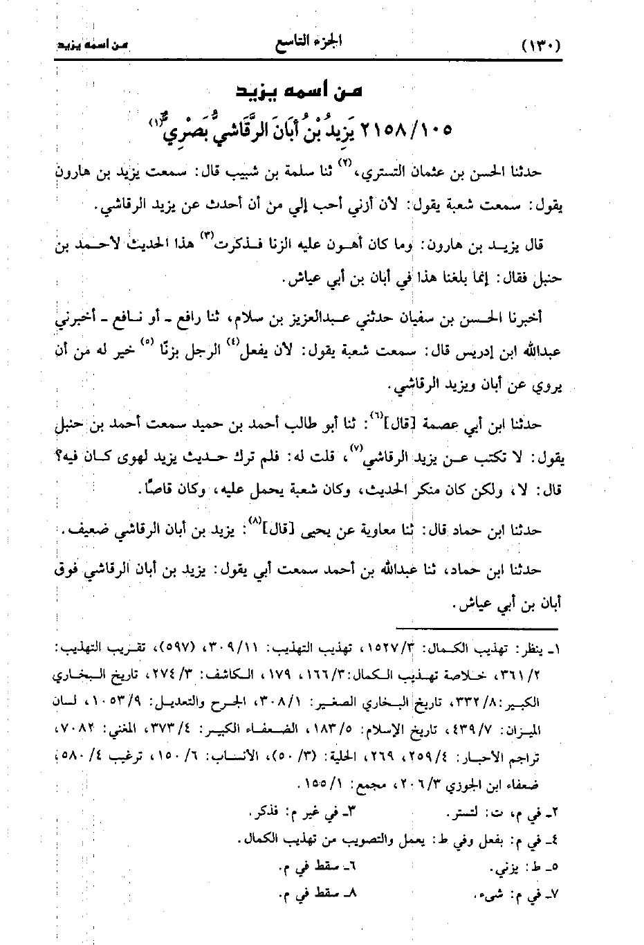 حَدَّثَنَا الْحَسَنُ بْنُ عُثْمَانَ التُّسْتَرِيُّ، حَدَّثَنا سَلَمَةُ بْنُ شَبِيبٍ، قَالَ: سَمِعْتُ يزيد بن هارون يقول: سَمعتُ شُعْبَة يقول لأَن أزني أحب إلي من أن أحدث عَن يزيد الرقاشي.