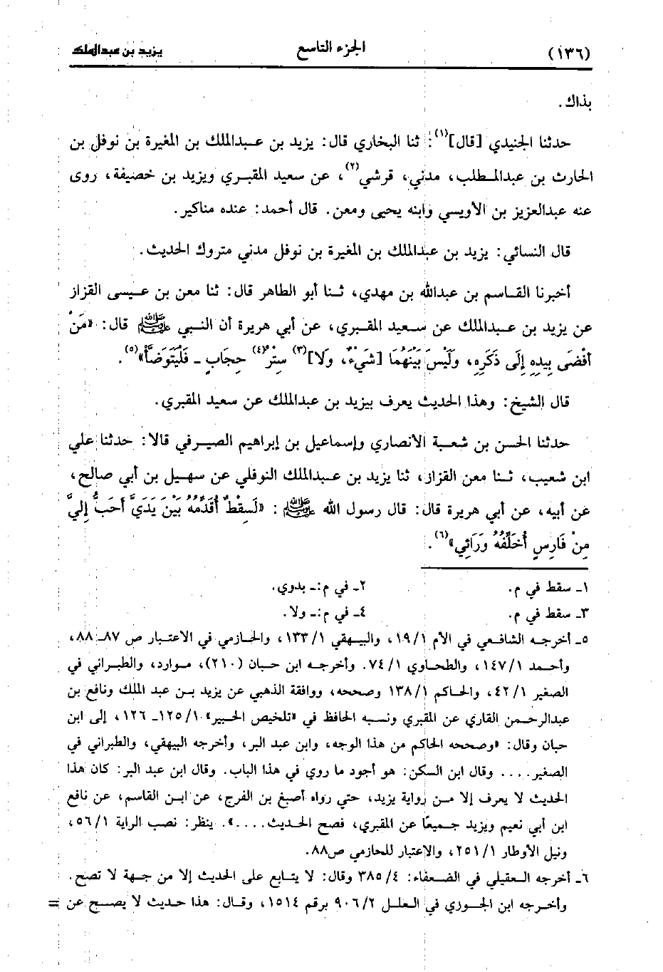 وقال النسائي يزيد بن عَبد الملك بن المغيرة بن نوفل مدني متروك الحديث.