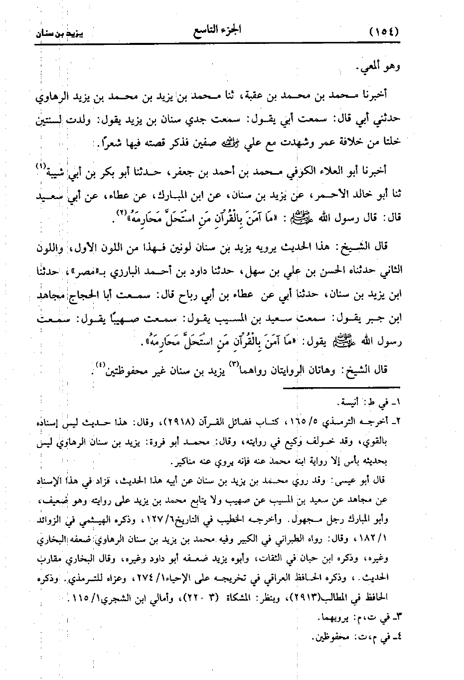 قَالَ الشَّيْخُ: وَهَاتَانِ الرِّوَايَتَانِ رَوَاهُمَا يَزِيدُ بن سنان غير محفوظتين