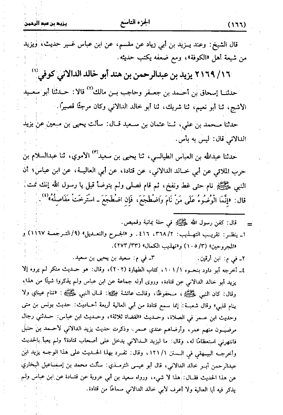 2169- يزيد بن عَبد الرحمن بن هند أبو خالد الدالاني كوفي.