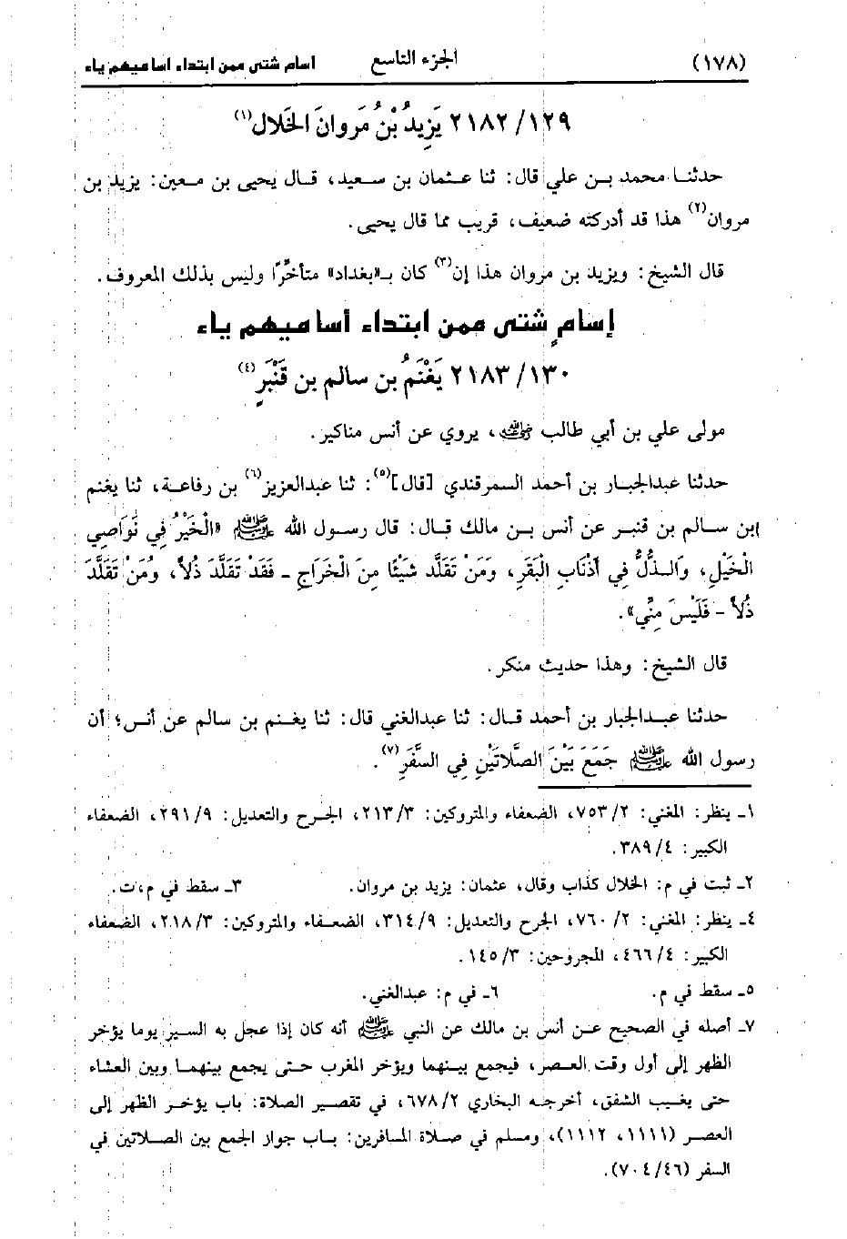حَدَّثَنَا عَبد الجبار بن أحمد، قَال: حَدَّثَنا عَبد الغني، قَال: حَدَّثَنا يَغْنَمُ بْنُ سَالِمٍ، عَن أَنَس، أَن رسُول اللَّهِ صَلَّى اللَّهُ عَلَيهِ وَسلَّمَ جَمَعَ بَيْنَ الصَّلاتَيْنِ في السفر
