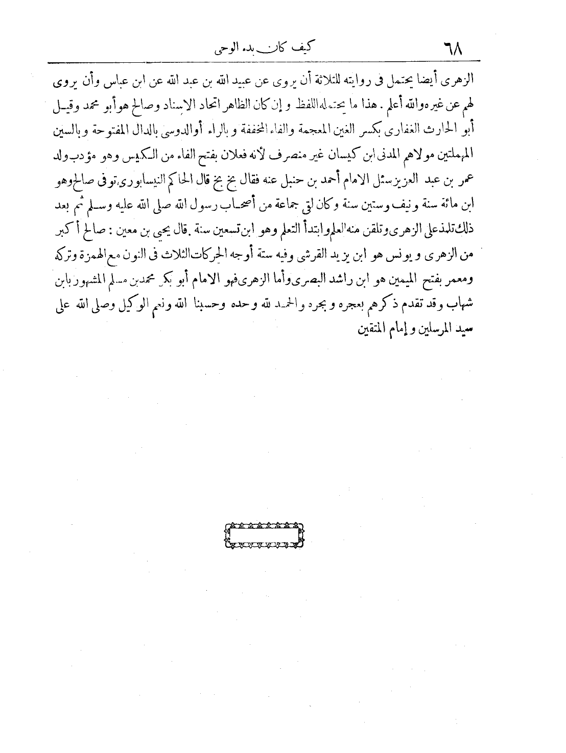 الزهري أيضاً يحتمل في روايته للثلاثة أن يروى عن عبيد الله بن عبد الله عن ابن عباس وأن يروى لهم عن غيره والله أعلم. هذا ما يحتمله اللفظ وإن كان الظاهر اتحاد الإسناد وصالح هو أبو محمد وقيل أبو الحارث الغِفاري بكسر الغين المعجمة والفاء المخففة وبالراء أو الدوسي بالدال المفتوحة وبالسين المهملتين مولاهم المدني ابن كيسان غير منصرف لأنه فعلان بفتح الفاء من الكيس وهو مؤدب ولد عمر بن عبد العزيز سُئل الإمام أحمد بن حنبل عنه فقال بخ بخ قال الحاكم النيسابوري توفي صالح وهو ابن مائة سنة ونيف وستين سنة وكان لقي جماعة من أصحاب رسول الله صلى الله عليه وسلم ثم بعد ذلك تلمذ على الزهري وتلقن منه العلم وابتدأ التعلم وهو ابن تسعين سنة. قال يحيى بن معين: صالح أكبر من الزهري ويونس هو ابن يزيد القرشي وفيه ستة أوجه الحركات الثلاث في النون مع الهمزة وتركه ومعمر بفتح الميمين هو ابن راشد البصري وأما الزهري فهو الإمام أبو بكر محمد بن مسلم المشهور بابن شهاب وقد تقدم ذكرهم بعجره وبجره والحمد لله وحده وحسبنا الله ونعم الوكيل وصلى الله على سيد المرسلين وإمام المتقين.