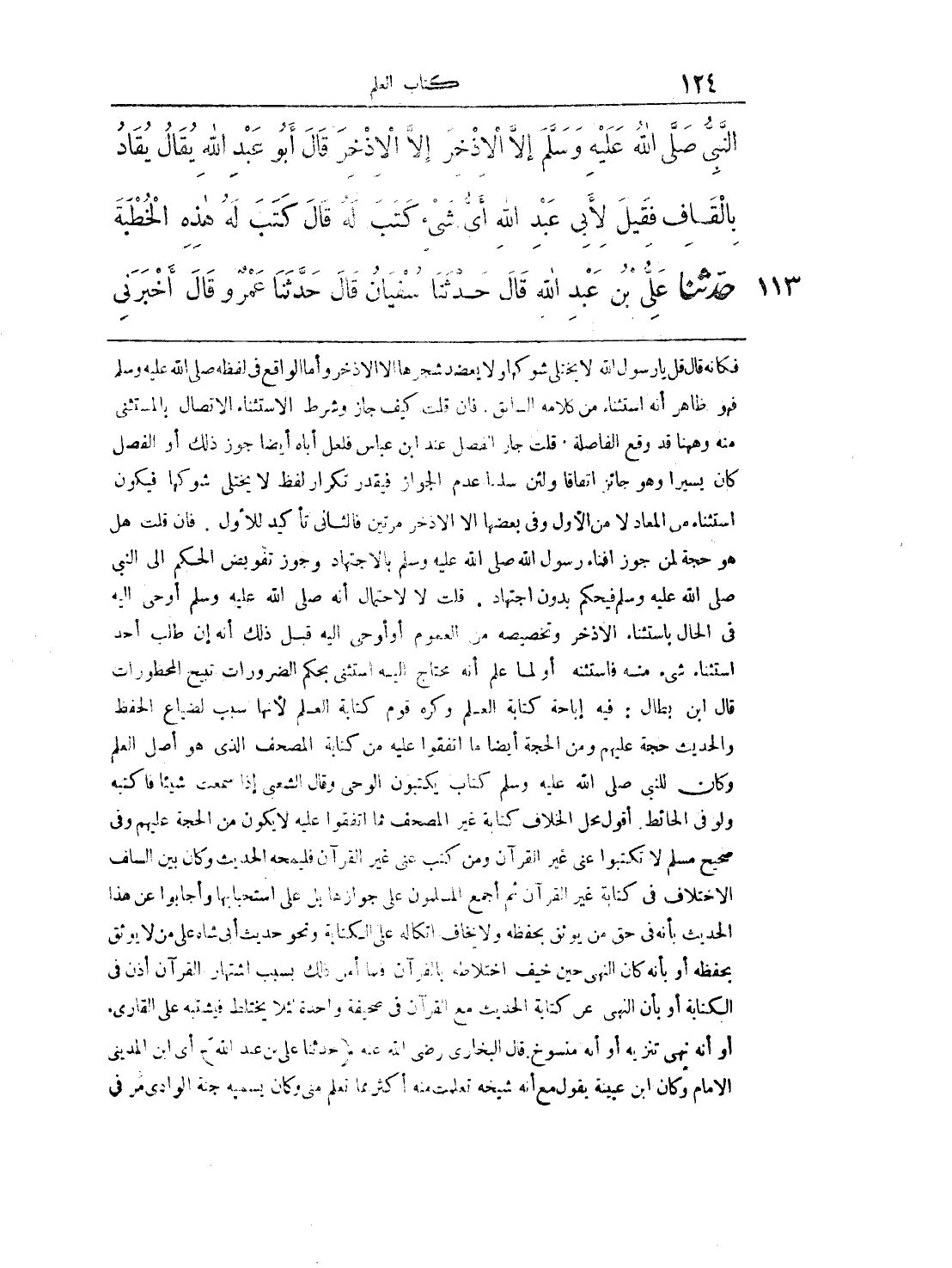 113 - حَدَّثَنَا عَلِىُّ بْنُ عَبْدِ اللَّهِ قَالَ حَدَّثَنَا سُفْيَانُ قَالَ حَدَّثَنَا عَمْرٌو قَالَ أَخْبَرَنِى