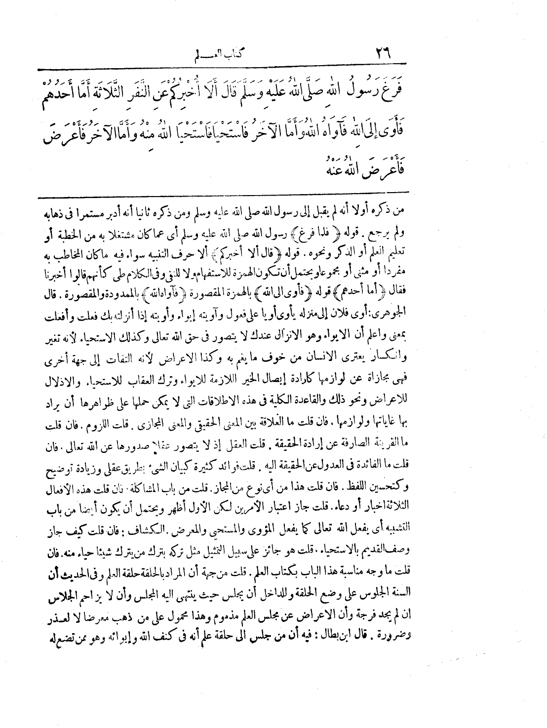 فَرَغَ رَسُولُ اللَّهِ صلى الله عليه وسلم قَالَ «أَلاَ أُخْبِرُكُمْ عَنِ النَّفَرِ الثَّلاَثَةِ أَمَّا أَحَدُهُمْ فَأَوَى إِلَى اللَّهِ، فَآوَاهُ اللَّهُ، وَأَمَّا الآخَرُ فَاسْتَحْيَا، فَاسْتَحْيَا اللَّهُ مِنْهُ، وَأَمَّا الآخَرُ فَأَعْرَضَ، فَأَعْرَضَ اللَّهُ عَنْهُ»
