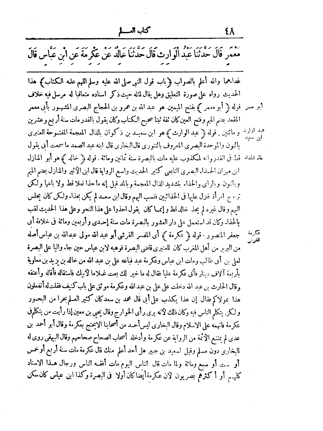 مَعْمَرٍ قَالَ حَدَّثَنَا عَبْدُ الْوَارِثِ قَالَ حَدَّثَنَا خَالِدٌ عَنْ عِكْرِمَةَ عَنِ ابْنِ عَبَّاسٍ قَالَ