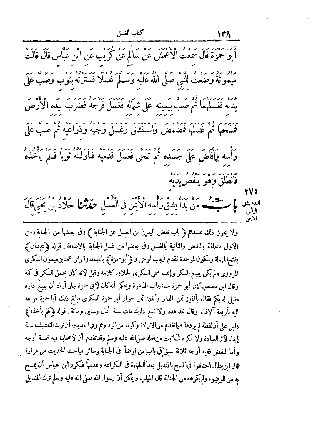 باب من بدأ بشق رأسه الايمن في الغسل