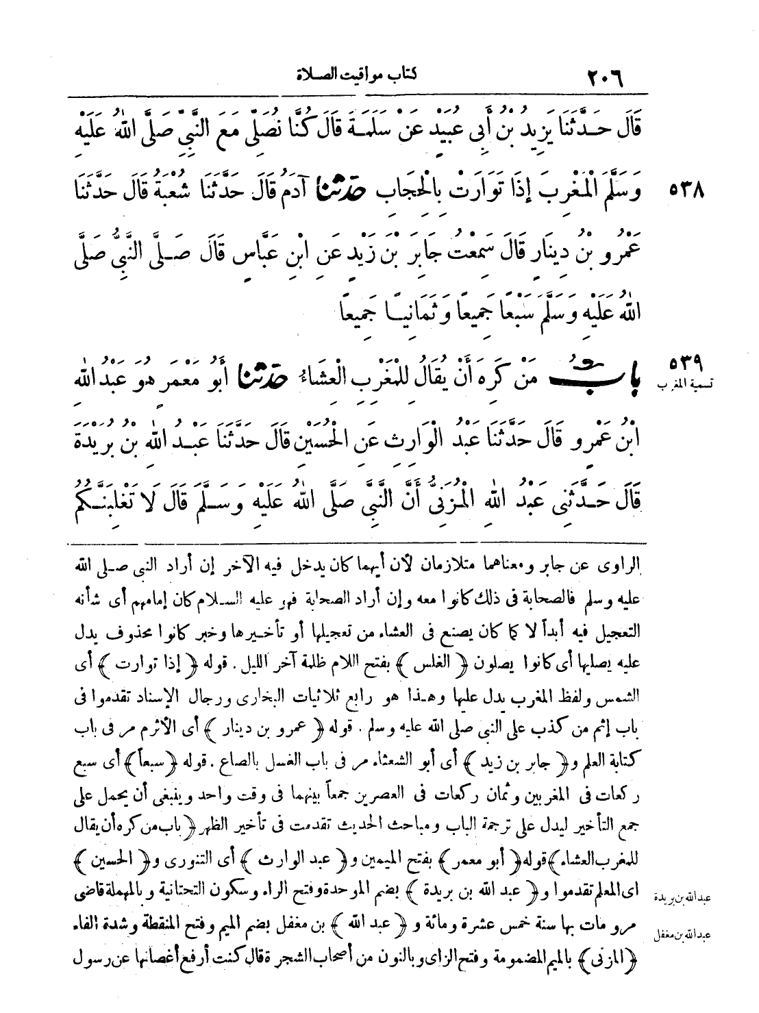 قَالَ حَدَّثَنَا يَزِيدُ بْنُ أَبِى عُبَيْدٍ عَنْ سَلَمَةَ قَالَ كُنَّا نُصَلِّى مَعَ النَّبِىِّ - صلى الله عليه وسلم - الْمَغْرِبَ إِذَا تَوَارَتْ بِالْحِجَابِ.