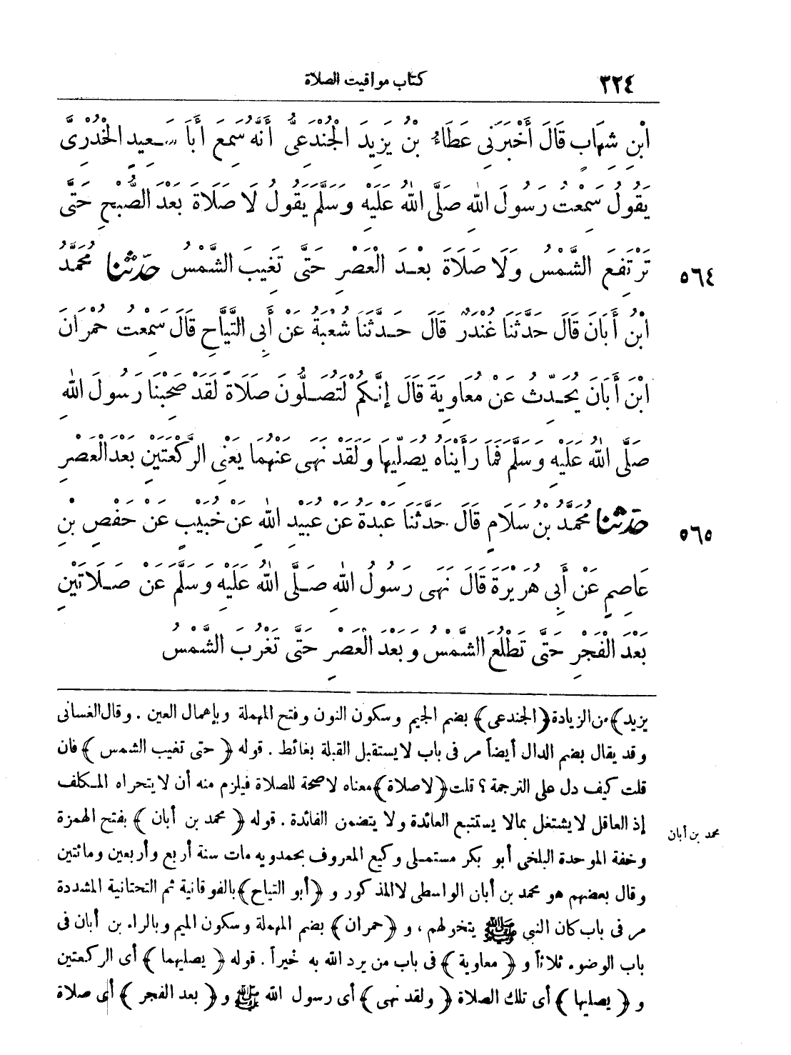 564 - حَدَّثَنَا مُحَمَّدُ بْنُ أَبَانَ قَالَ حَدَّثَنَا غُنْدَرٌ قَالَ حَدَّثَنَا شُعْبَةُ عَنْ أَبِى التَّيَّاحِ قَالَ سَمِعْتُ حُمْرَانَ بْنَ أَبَانَ يُحَدِّثُ عَنْ مُعَاوِيَةَ قَالَ إِنَّكُمْ لَتُصَلُّونَ صَلاَةً، لَقَدْ صَحِبْنَا رَسُولَ اللَّهِ - صلى الله عليه وسلم - فَمَا رَأَيْنَاهُ يُصَلِّيهَا وَلَقَدْ نَهَى عَنْهُمَا، يَعْنِى الرَّكْعَتَيْنِ بَعْدَ الْعَصْرِ
