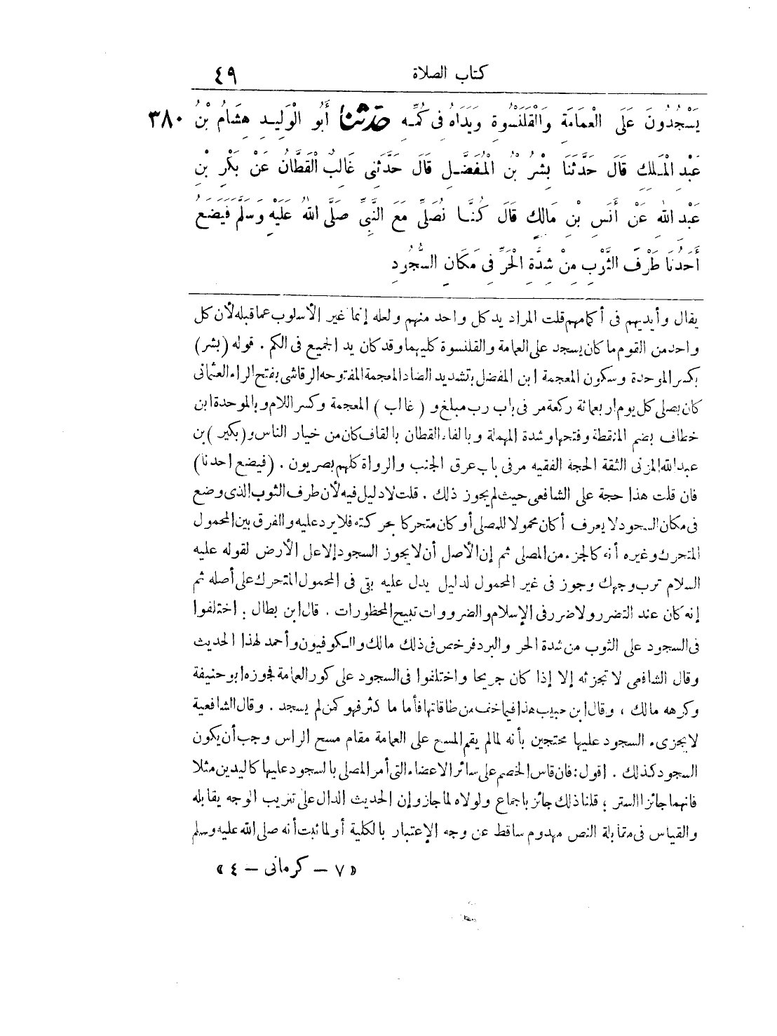 يَسْجُدُونَ عَلَى الْعِمَامَةِ وَالْقَلَنْسُوَةِ وَيَدَاهُ فِى كُمِّهِ.