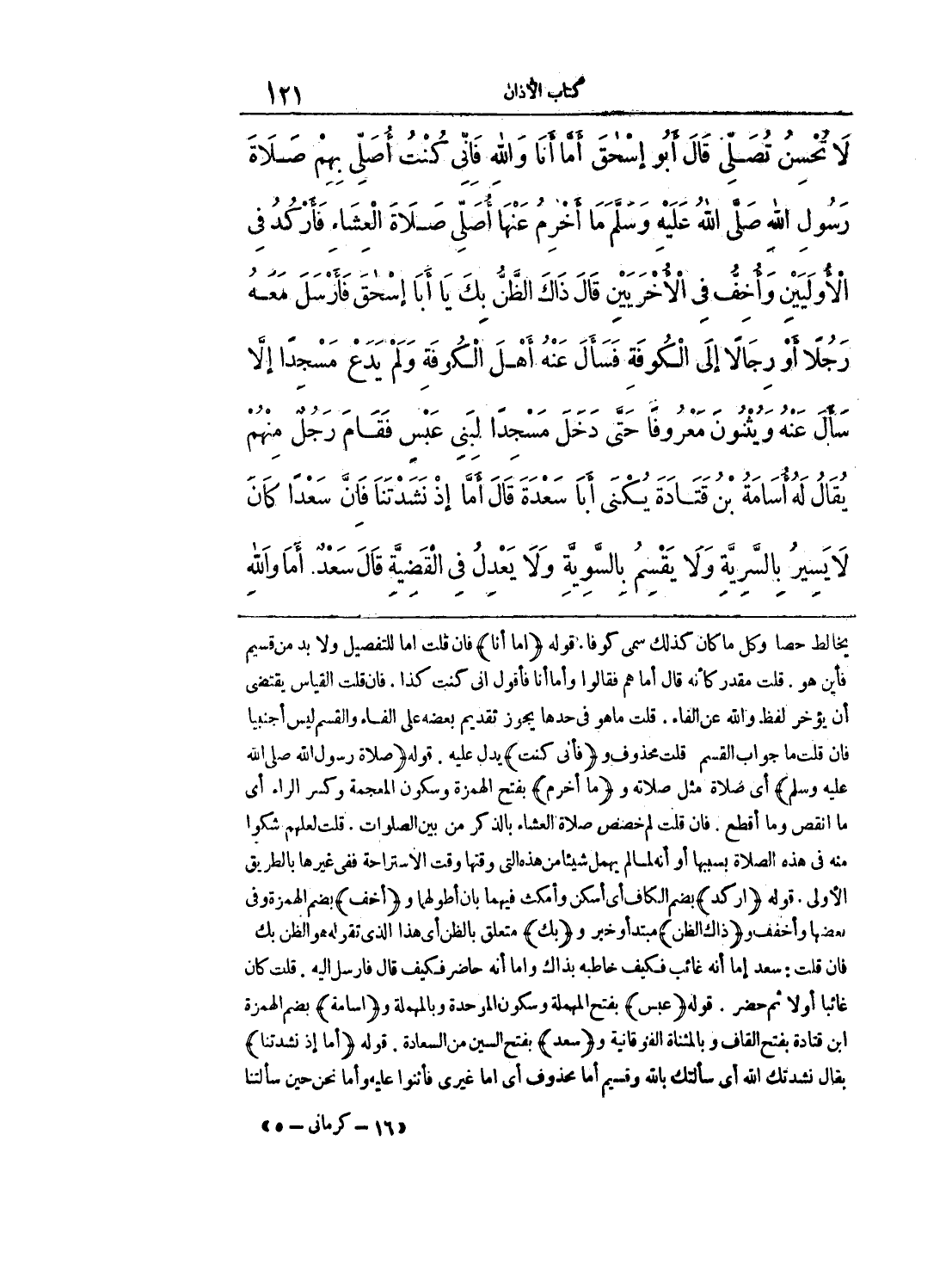 يخالط حصا وكل ماكان كذلك سمي كوفا قوله (أما أنا) فان قلت أما التفصيل ولابد مكن قسيم فأين هو قلت مقدر كأنه قال أما هم فقالوا أما أنا فأنا أقول كنت كذا فان قلت القياس يقتضي تاخير لفظ والله عن الفاء قلت ماهو في وحدها يجوز تقديم بعضها عن الفاء والقسم ليس أجنبيا فان قلت ماهو جواب القسم قلت محذوف و (فأنى كنت) يدل عليه قوله (صلاة رسول الله صلى الله عليه وسلم) أي صلاة مثل صلاته وما أخرم بفتح الهمزة وكون المععجمة وكسر الراء أي ما أنقص وما أقطع فان قلت لما خصص صلاة العشاء بالذكر من بين الصلوات قلت لعلهم شكرا منه في هذة الصلاة بسببها أو أنه لما لم يهمل شيئا من هذه التي وقتها وقت الاستراحة ففي غيرها بالطريق الأولى قوله (اركد) بضم الكاف أي اسكن وامكث فيهما بان اطولهما و (أخف) بضم الهمزة وفي بعضها وأخفف (ذاك الظن) مبتدأ وخبر و (بك) متعلق بالظن وهذا الذي تقوله هو الظن بك فان قلت سعد إما أنه غائب فكيف خاطبه بذاك واما انه حاضر فكيف قال فارسل اليه قلت كان غائبا أولا ثم حضر قوله (عبس) بفتح المملة وسكون الموحدة وبالمهملة واسامة بضم الهمزة ابن قتادة بفتح القاف وبالمثناة الفوقانية و (سعد) بفتح السين من السعادة قوله (اما اذ نشدتنا) يقال نشدتك الله أي سألتك بالله وقسيم اما محذوف أي اما غيري فاتوني عليه وأما نحن حين سألتنا