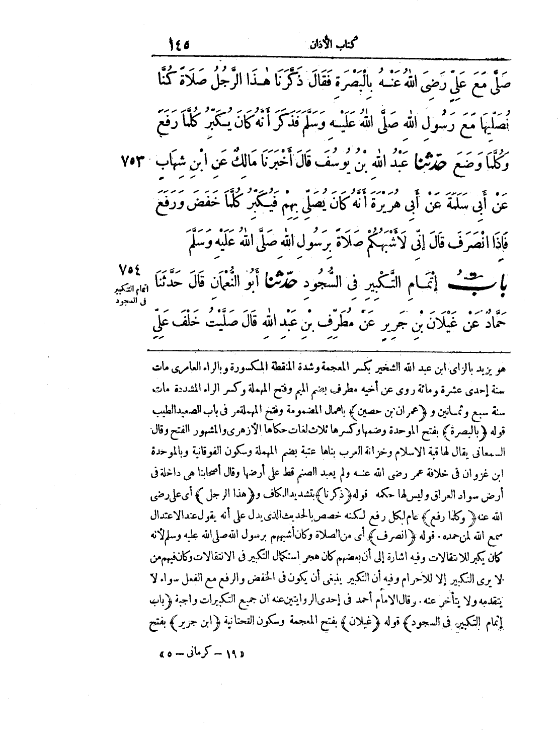 754 - حَدَّثَنَا أَبُو النُّعْمَانِ قَالَ: حَدَّثَنَا حَمَّادٌ عَنْ غَيْلاَنَ بْنِ جَرِيرٍ عَنْ مُطَرِّفِ بْنِ عَبْدِ اللهِ، قَالَ: صَلَّيْتُ خَلْفَ عَلِيِّ