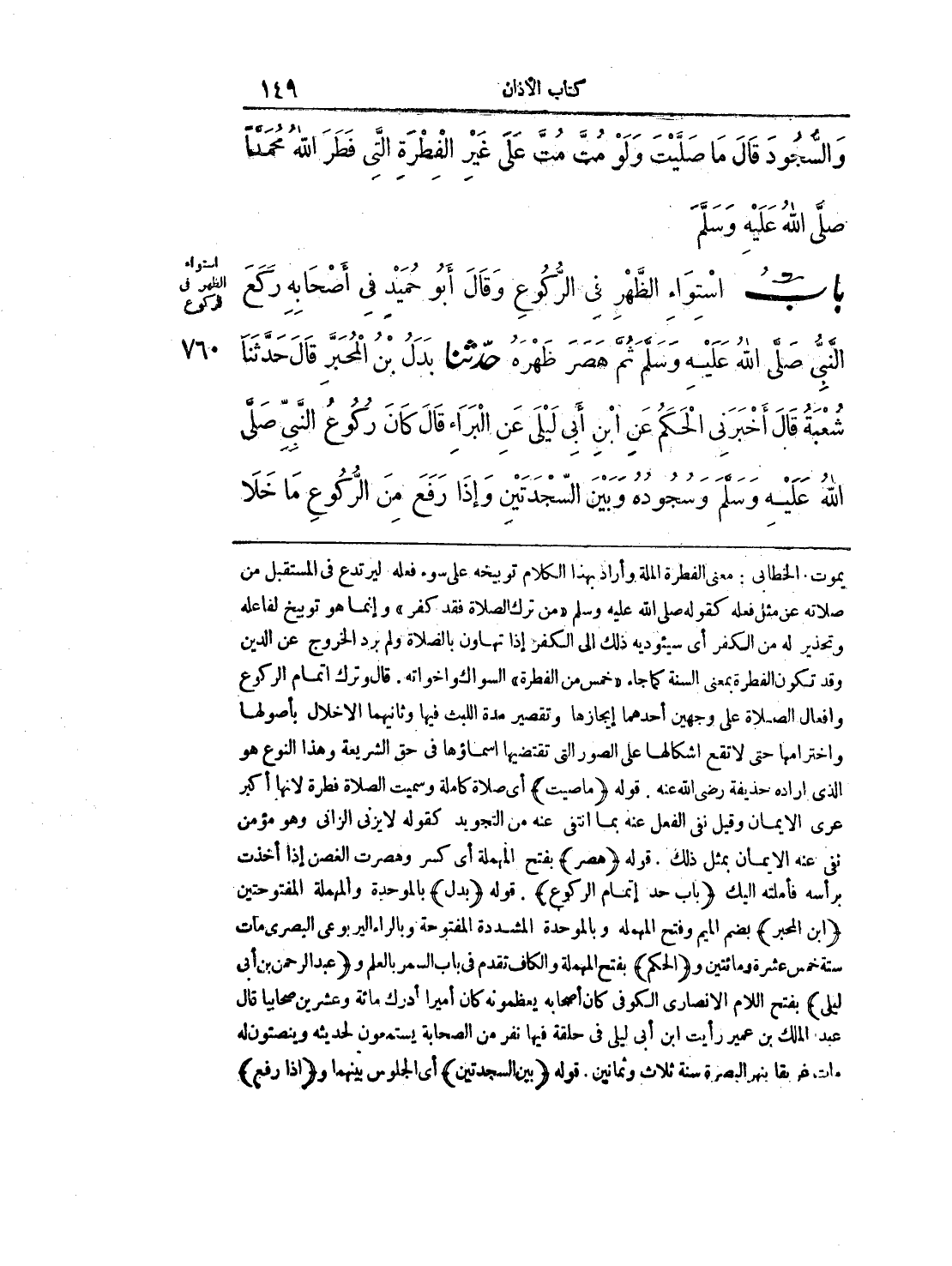 760 - حَدَّثَنَا بَدَلُ بْنُ الْمُحَبَّرِ قَالَ: حَدَّثَنَا شُعْبَةُ قَالَ: أَخْبَرَنِي الْحَكَمُ، عَنِ ابْنِ أَبِي لَيْلَى، عَنِ الْبَرَاءِ قَالَ كَانَ رُكُوعُ النَّبِيِّ صلى الله عليه وسلم وَسُجُودُهُ وَبَيْنَ السَّجْدَتَيْنِ، وَإِذَا رَفَعَ مِنَ الرُّكُوعِ مَا خَلاَ
