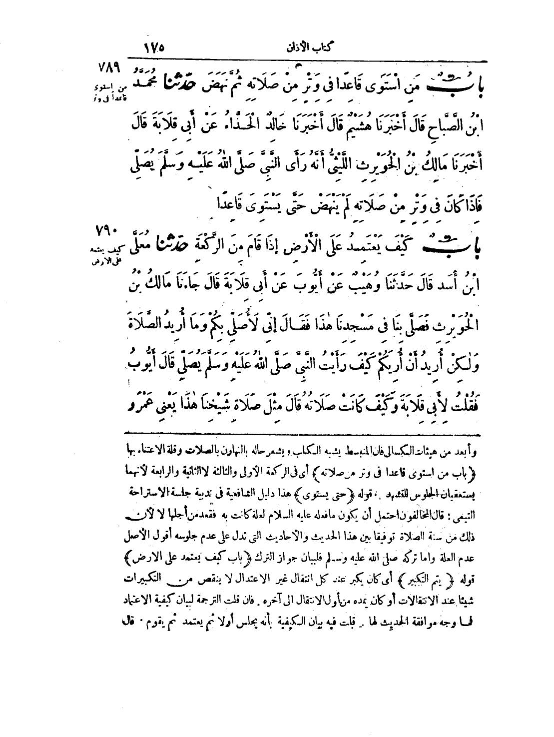 789 - حَدَّثَنَا مُحَمَّدُ بْنُ الصَّبَّاحِ قَالَ: أَخْبَرَنَا هُشَيْمٌ قَالَ: أَخْبَرَنَا خَالِدٌ الْحَذَّاءُ، عَنْ أَبِي قِلاَبَةَ قَالَ: أَخْبَرَنَا مَالِكُ بْنُ الْحُوَيْرِثِ اللَّيْثِيُّ أَنَّهُ رَأَى النَّبِيَّ صلى الله عليه وسلم يُصَلِّي فَإِذَا كَانَ فِي وِتْرٍ مِنْ صَلاَتِهِ لَمْ يَنْهَضْ حَتَّى يَسْتَوِيَ قَاعِدًا