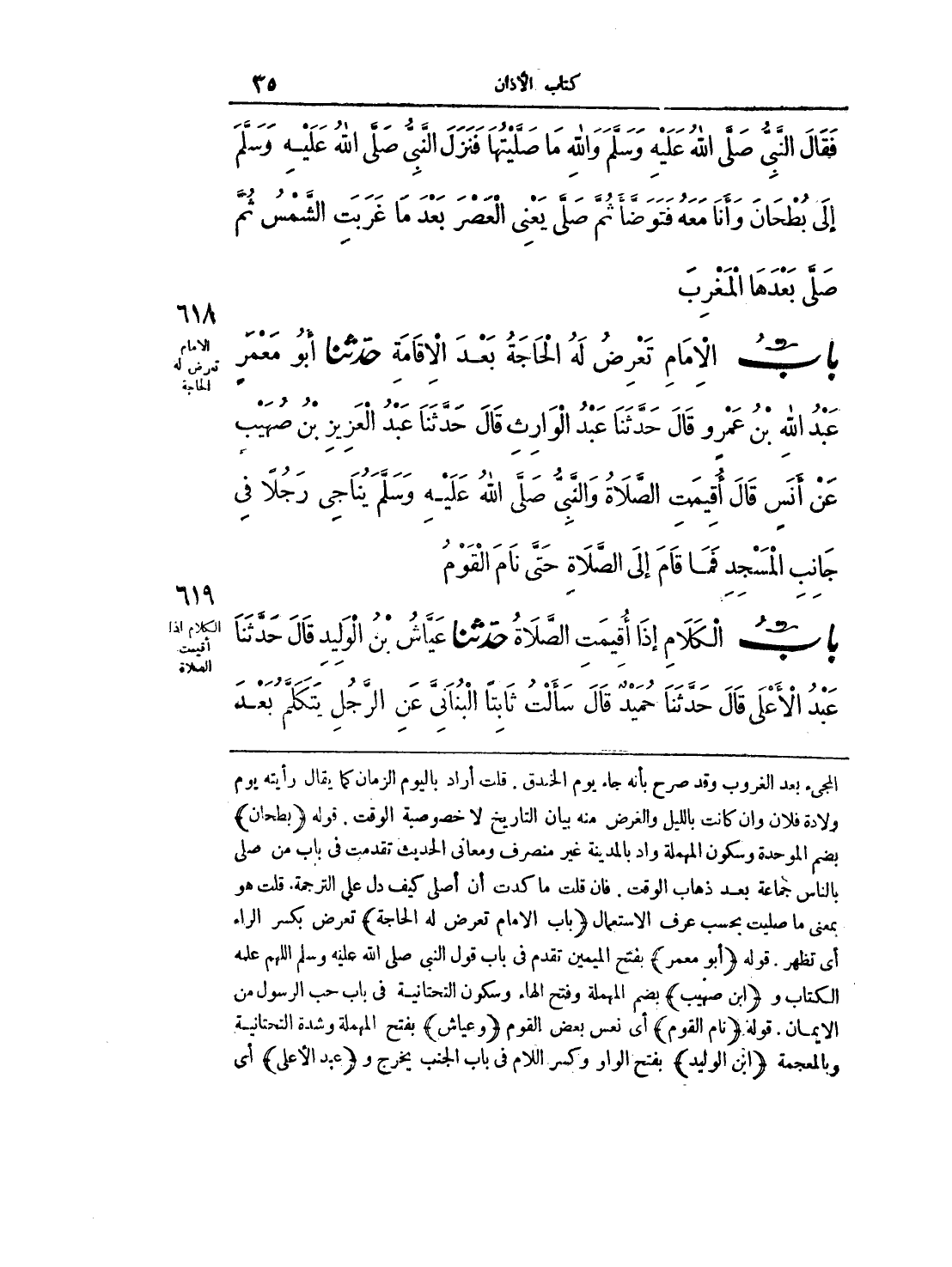 619 - حَدَّثنا عَيَّاشُ بْنُ الوَلِيدِ، قَالَ: حَدَّثنا عَبْدُ الأَعْلَى، قَالَ: حَدَّثنا حُمَيْدٌ، قَالَ: سَأَلْتُ ثَابِتًا البُنَانِيَّ عَنِ الرَّجُلِ يَتَكَلَّمُ بَعْدَ