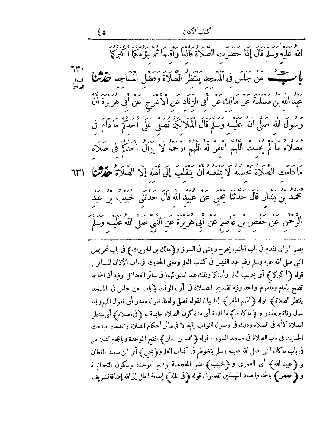 بابُ مَنْ جَلَسَ فِي المَسْجِدِ يَنْتَظِرُ الصَّلاَةَ وَفَضْلِ المَسَاجِدِ.