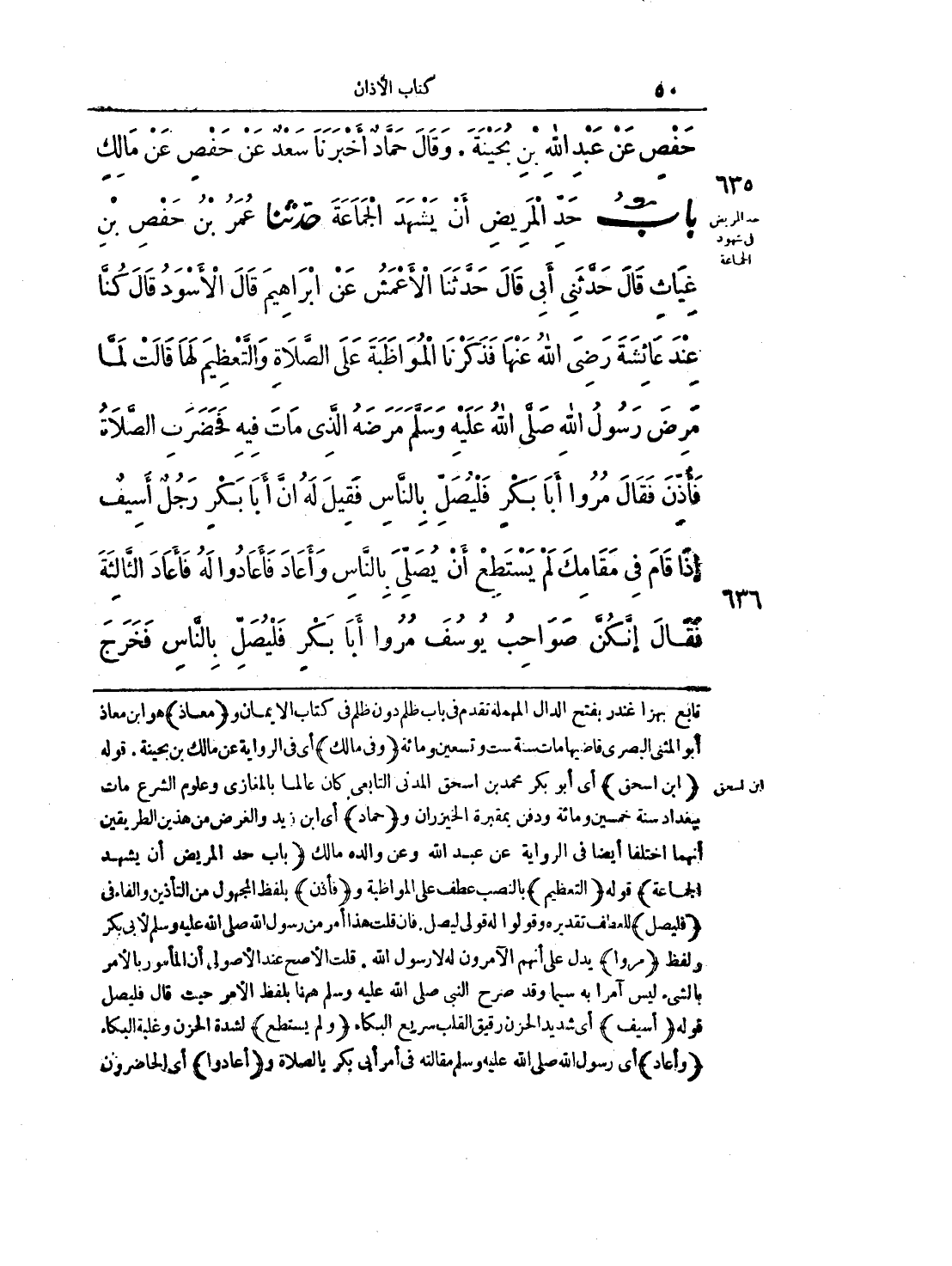 636 - فَقَالَ: إِنَّكُنَّ صَوَاحِبُ يُوسُفَ، مُرُوا أَبَا بَكْرٍ فَلْيُصَلِّ بِالنَّاسِ، فَخَرَجَ