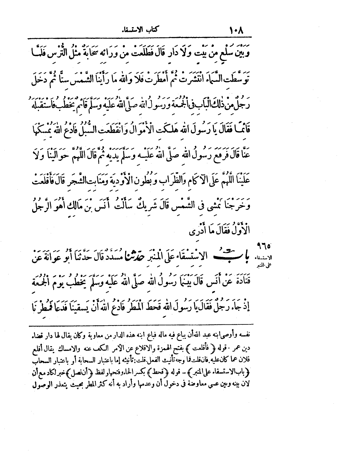 نفسه وأوصى ابنه عبد الله أن يباع فيه ماله فباع ابنه هذه الدار من معاوية وكان يقال لها دار قضاء دين عمر, قوله ((فأقلعت)) بفتح الهمزة والإقلاع عن الأمر الكف عنه والإمساك يقال أقلع فلان عما كان عليه, فإن قلت فما وجه تأنيث الفعل, قلت: تأنيثه إما باعتبار السحابة أو باعتبار السحاب ((باب الاستسقاء على المنبر)) قوله ((قحط)) بكسر الحاء وفتحها ولفظ ((أن نصل)) خبر لكاد مع أن لأن بينه وبين عسى معاوضة في دخول أن وعدمها وأراد به أنه كثر المطر بحيث يتعذر الوصول