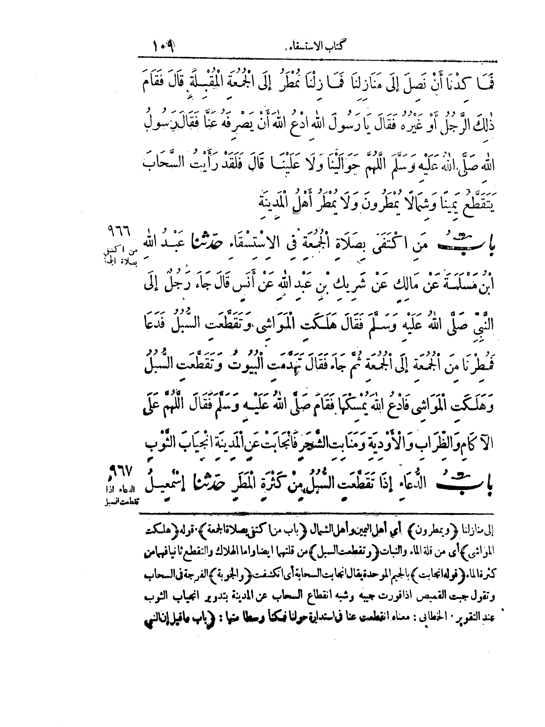 بَاب الدُّعَاءِ إِذَا تَقَطَّعَتْ السُّبُلُ مِنْ كَثْرَةِ الْمَطَرِ