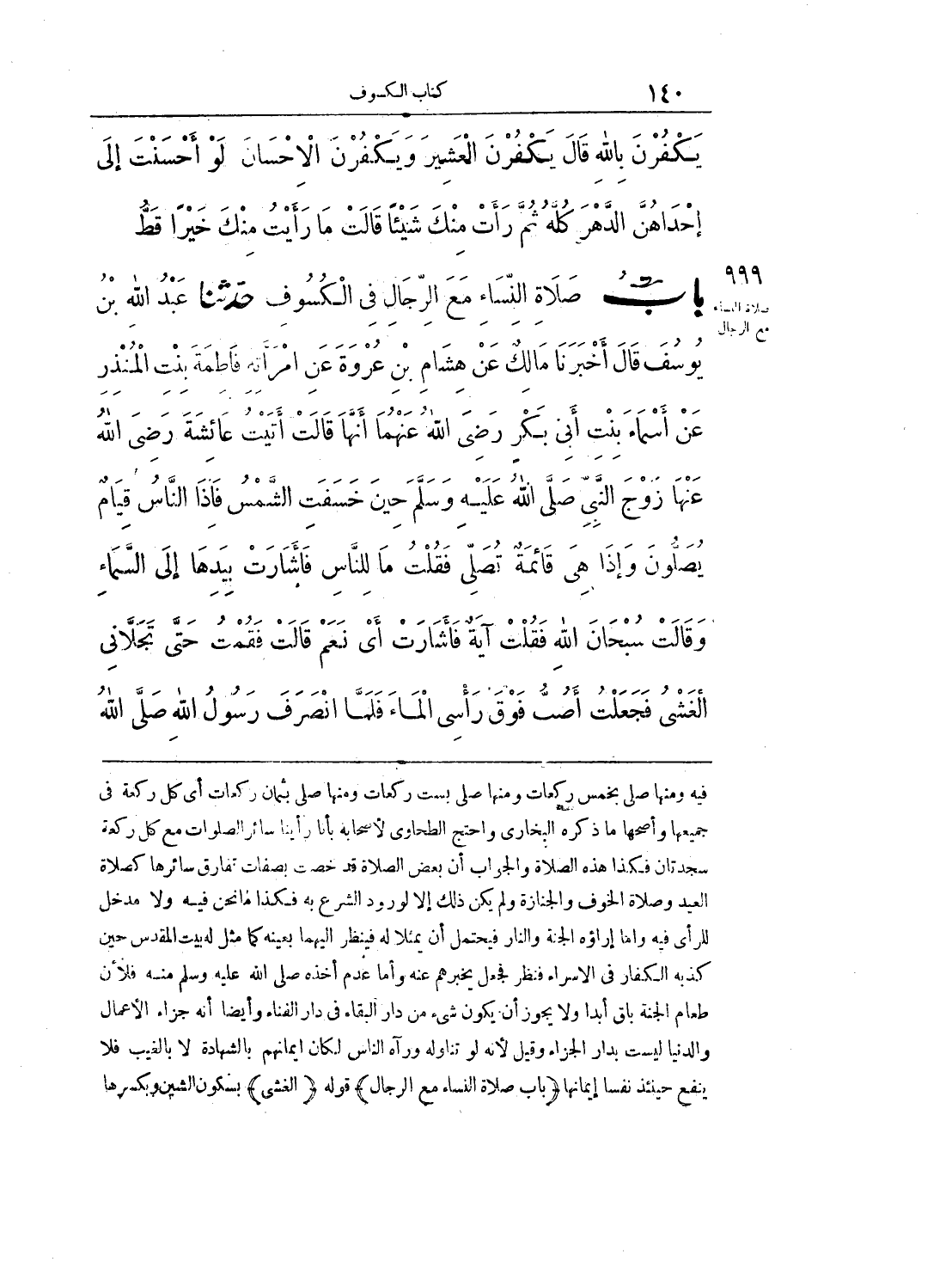 بَاب صَلَاةِ النِّسَاءِ مَعَ الرِّجَالِ فِي الْكُسُوفِ