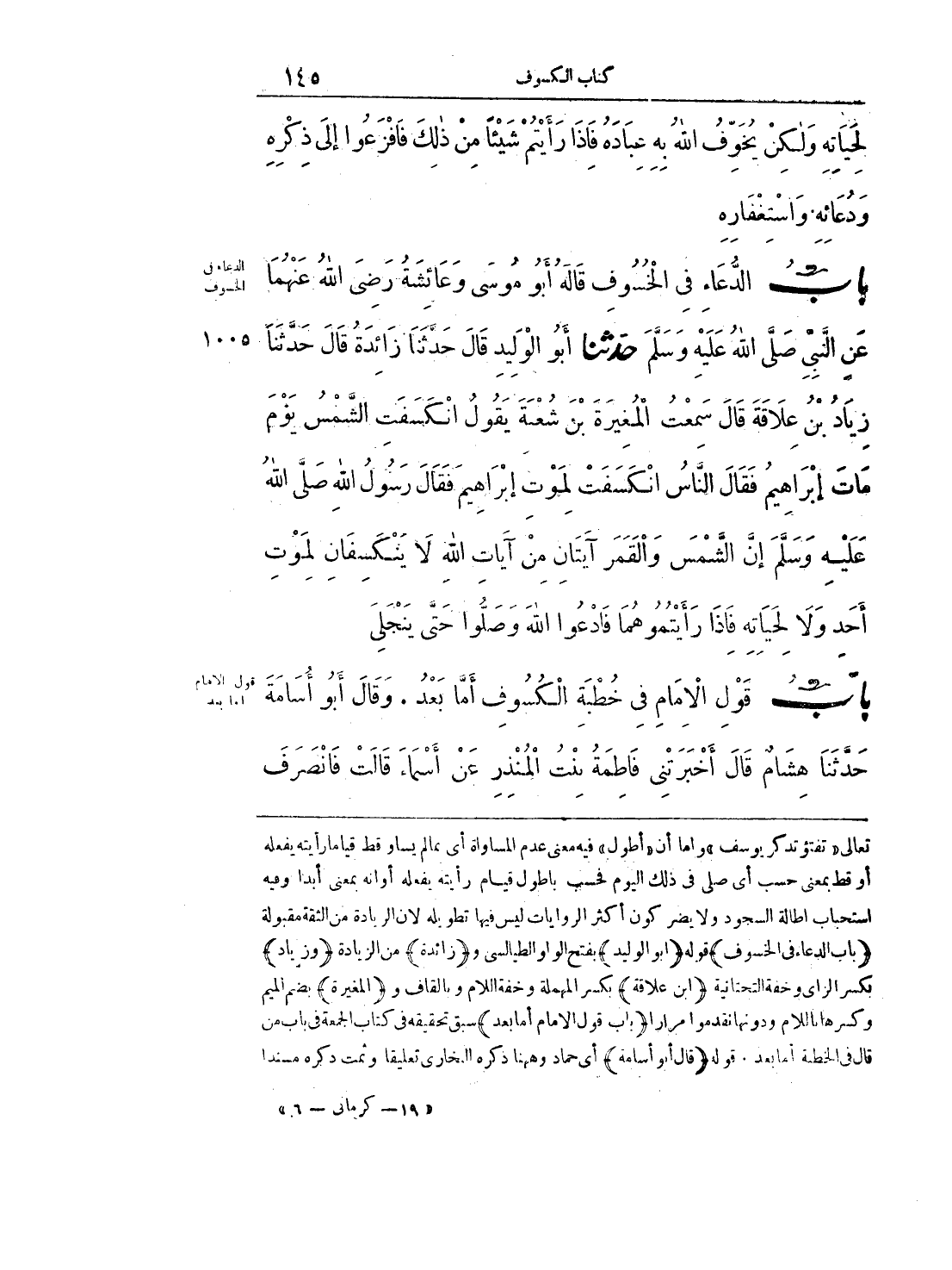 تعالى «تفتؤ تذكر يوسف» وإما أن «أطول» فيه معنى عدم المساواة أي بما لم يساو قط قياما رأيته يفعله أو قط بمعنى حسب أي صلى في ذلك اليوم فحسب بأطول قيام رأيته يفعله أوانه بمعنى أبدا وفيه استحباب إطالة السجود ولا يضر كون أكثر الروايات ليس فيها تطويله لأن الزيادة من الثقة مقبولة ((باب الدعاء في الخسوف)) قوله ((أبو الوليد)) بفتح الواو الطيالسي و ((زائدة)) من الزيادة ((وزياد)) بكسر الزاي وخفة التحتانية ((ابن علاقة)) بكسر المهملة وخفة اللام وبالقاف و ((المغيرة)) بضم الميم وكسرها باللام ودونها تقدموا مرارا ((باب قول الإمام أما بعد)) سبق تحقيقه في كتاب الجمعة في باب من قال في الخطبة أما بعد, قوله ((قال أبو أسامة)) أي حماد وههنا ذكره البخاري تعليقا وثمت ذكره مسنداً