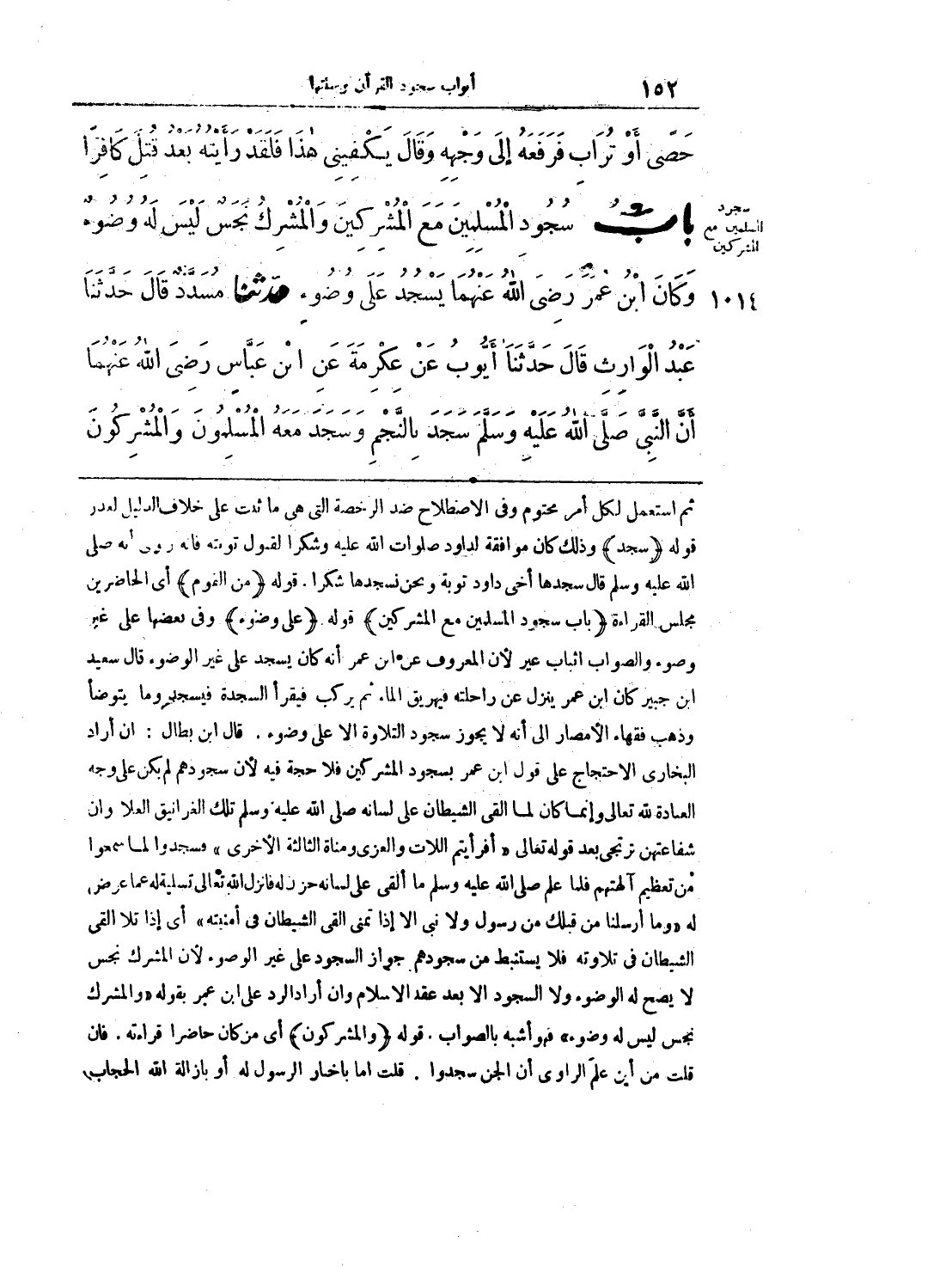 وكان ابن عمر رضي الله عنهما يسجد على وضوء