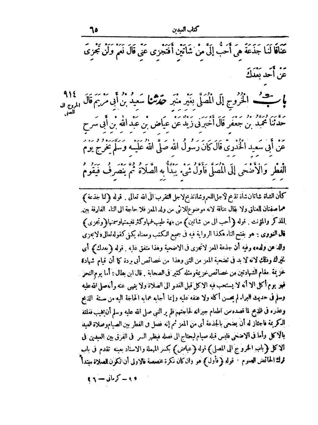 914 - حَدَّثَنَا سَعِيدُ بْنُ أَبِي مَرْيَمَ قَالَ حَدَّثَنَا مُحَمَّدُ بْنُ جَعْفَرٍ قَالَ أَخْبَرَنِي زَيْدٌ عَنْ عِيَاضِ بْنِ عَبْدِ اللَّهِ بْنِ أَبِي سَرْحٍ عَنْ أَبِي سَعِيدٍ الْخُدْرِيِّ قَالَ كَانَ رَسُولُ اللَّهِ صَلَّى اللَّهُ عَلَيْهِ وَسَلَّمَ يَخْرُجُ يَوْمَ الْفِطْرِ وَالْأَضْحَى إِلَى الْمُصَلَّى فَأَوَّلُ شَيْءٍ يَبْدَأُ بِهِ الصَّلَاةُ ثُمَّ يَنْصَرِفُ فَيَقُومُ