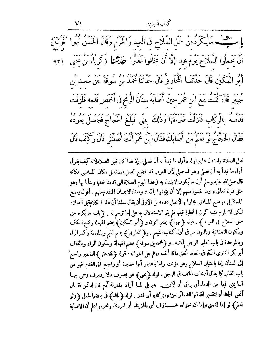 بَاب مَا يُكْرَهُ مِنْ حَمْلِ السِّلَاحِ فِي الْعِيدِ وَالْحَرَمِ