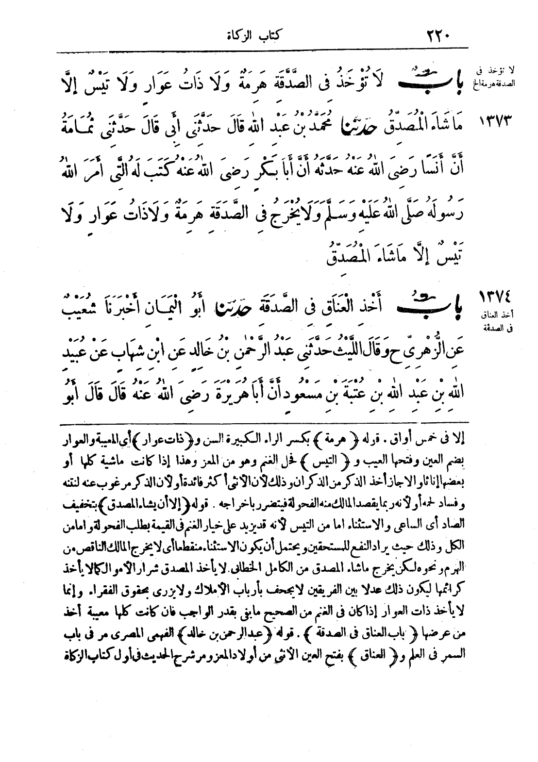 1373 - حَدَّثَنَا مُحَمَّدُ بْنُ عَبْدِ اللَّهِ قَالَ حَدَّثَنِى أَبِى قَالَ حَدَّثَنِى ثُمَامَةُ أَنَّ أَنَساً - رضى الله عنه - حَدَّثَهُ أَنَّ أَبَا بَكْرٍ رضى الله عنه كَتَبَ لَهُ الصَّدَقَةَ الَّتِى أَمَرَ اللَّهُ رَسُولَهُ صلى الله عليه وسلّم «وَلاَ يُخْرَجُ فِى الصَّدَقَةِ هَرِمَةٌ، وَلاَ ذَاتُ عَوَارٍ، وَلاَ تَيْسٌ، إِلاَّ مَا شَاءَ الْمُصَدِّقُ».