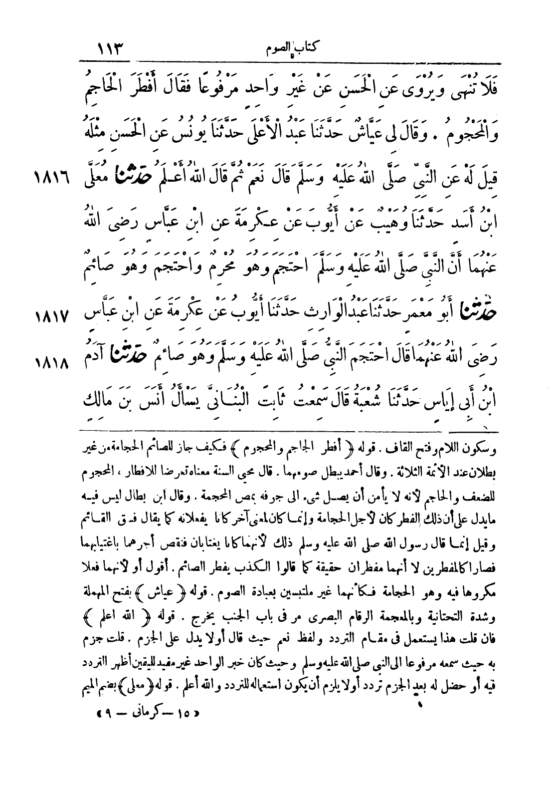 1817 - حَدَّثَنَا أَبُو مَعْمَرٍ حَدَّثَنَا عَبْدُ الْوَارِثِ حَدَّثَنَا أَيُّوبُ عَنْ عِكْرِمَةَ عَنْ ابْنِ عَبَّاسٍ رَضِيَ اللَّهُ عَنْهُمَا قَالَ
