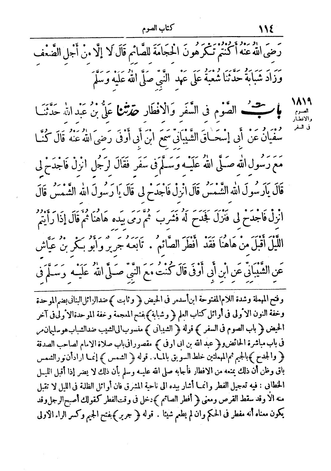 1819 - حَدَّثَنَا عَلِيُّ بْنُ عَبْدِ اللَّهِ حَدَّثَنَا سُفْيَانُ عَنْ أَبِي إِسْحَاقَ الشَّيْبَانِيِّ سَمِعَ ابْنَ أَبِي أَوْفَى رَضِيَ اللَّهُ عَنْهُ قَالَ