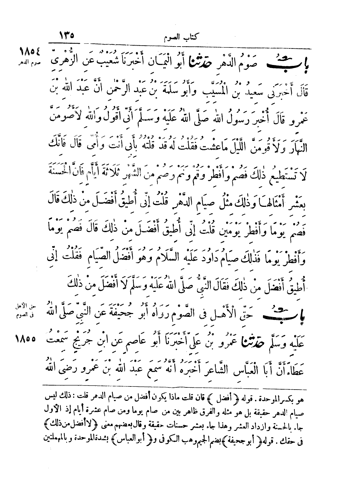 هو بكسر الموحدة, قوله {أفضل} فإن قلت ماذا يكون أفضل من صيام الدهر قلت: ذلك ليس صيام الدهر حقيقة بل هو مثله والفرق ظاهر بين من صام يوما ومن صام عشرة أيام إذ الأول جاء بالحسنة وازداد العشر وهذا بعشر حسنات حقيقة وقال بعضهم معنى {لا أفضل من ذلك} في حقك , قوله {أبو جحيفة} بضم الجيم وهب الكوفي و {أبو عباس} بشدة الموحدة وبالمهملتين