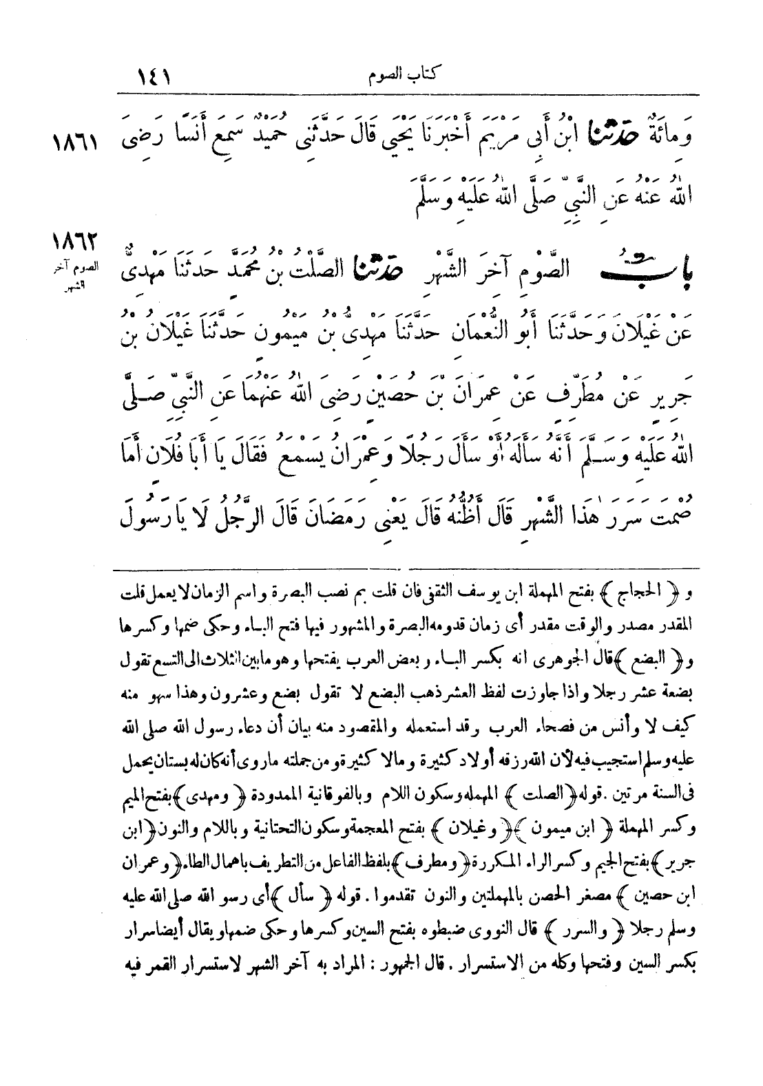 1862 - حَدَّثَنَا الصَّلْتُ بْنُ مُحَمَّدٍ حَدَّثَنَا مَهْدِيٌّ عَنْ غَيْلَانَ ح وحَدَّثَنَا أَبُو النُّعْمَانِ حَدَّثَنَا مَهْدِيُّ بْنُ مَيْمُونٍ حَدَّثَنَا غَيْلَانُ بْنُ جَرِيرٍ عَنْ مُطَرِّفٍ عَنْ عِمْرَانَ بْنِ حُصَيْنٍ رَضِيَ اللَّهُ عَنْهُمَا
