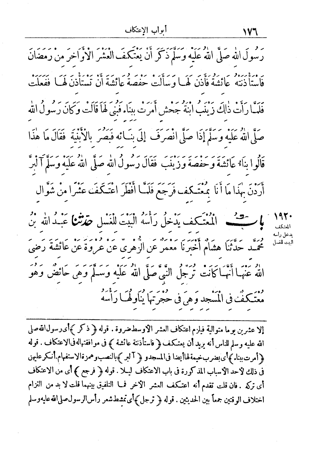 بَاب الْمُعْتَكِفِ يُدْخِلُ رَاسَهُ الْبَيْتَ لِلْغُسْلِ