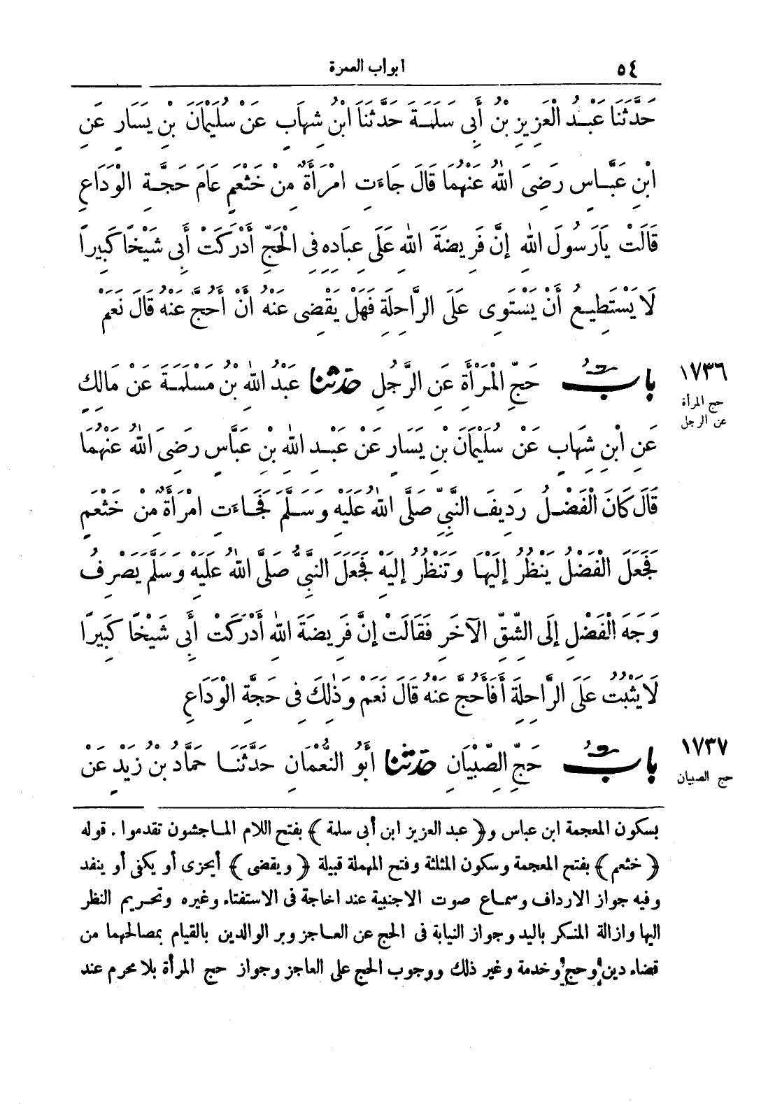 بسكون المعجمة ابن عباس و (عبد العزيز ابن أبي سلمة) بفتح اللام الماجشون تقدموا. قوله (خثعم) بفح المعجمة وسكون المثلثة وفتح المهملة قبيلة (ويقضي) أيجزي أم يكفي أو ينفد وفيه جواز الإرداف وسماع صوت الأجنبية عند الحاجة في الاستفتاء وغيره وتحريم النظر إليها وإزالة المنكر باليد وجواز النيابة في الحج عن العاجز وبر الوالدين بالقيام بمصالحهما من قضاء دين وحج وخدمة وغير ذلك ووجوب الحج على العاجز وجواز حج المرأة بلا محرم عند