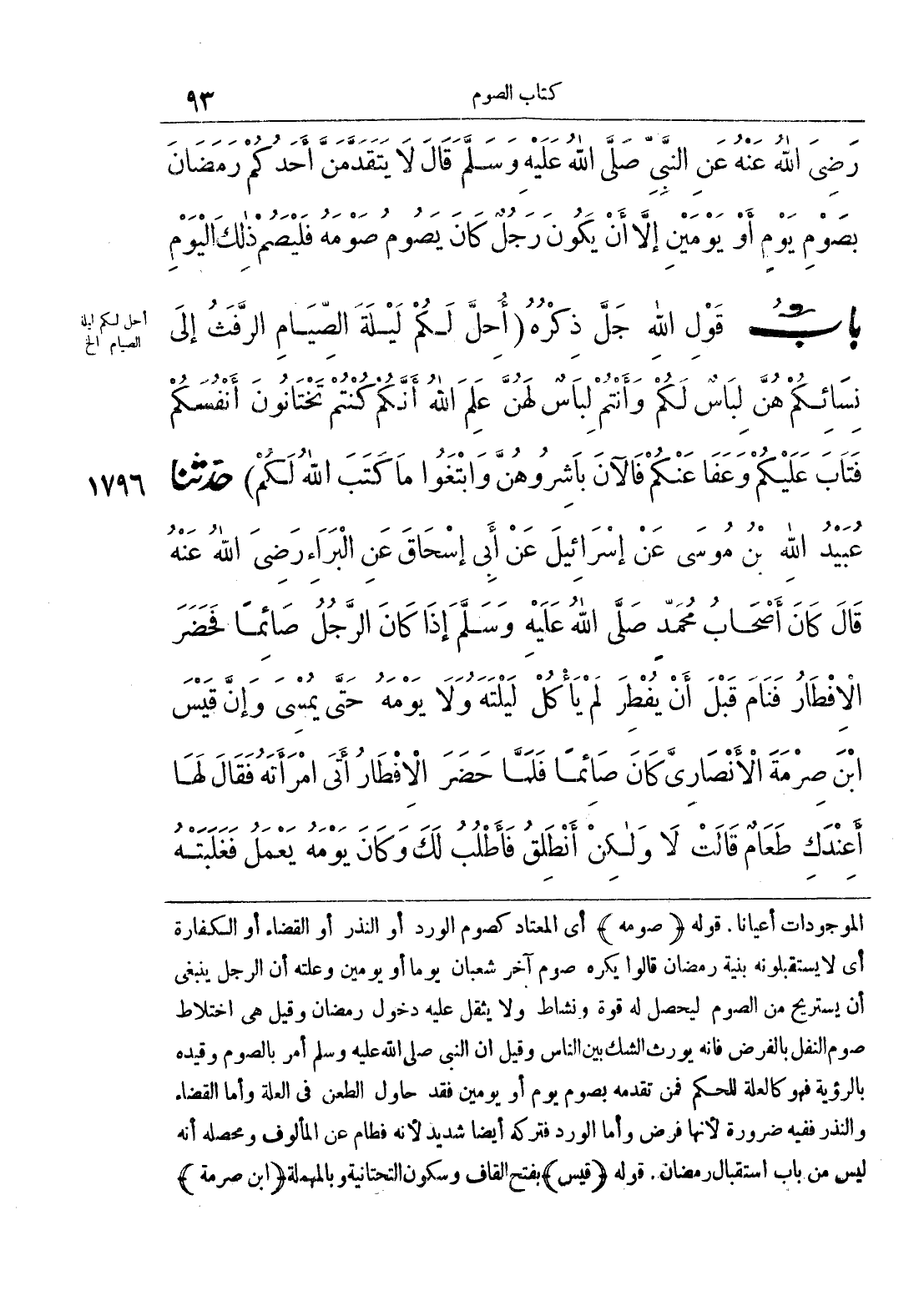 {أُحِلَّ لَكُمْ لَيْلَةَ الصِّيَامِ الرَّفَثُ إِلَى نِسَائِكُمْ هُنَّ لِبَاسٌ لَكُمْ وَأَنْتُمْ لِبَاسٌ لَهُنَّ عَلِمَ اللَّهُ أَنَّكُمْ كُنْتُمْ تَخْتَانُونَ أَنْفُسَكُمْ فَتَابَ عَلَيْكُمْ وَعَفَا عَنْكُمْ فَالْآنَ بَاشِرُوهُنَّ وَابْتَغُوا مَا كَتَبَ اللَّهُ لَكُمْ}