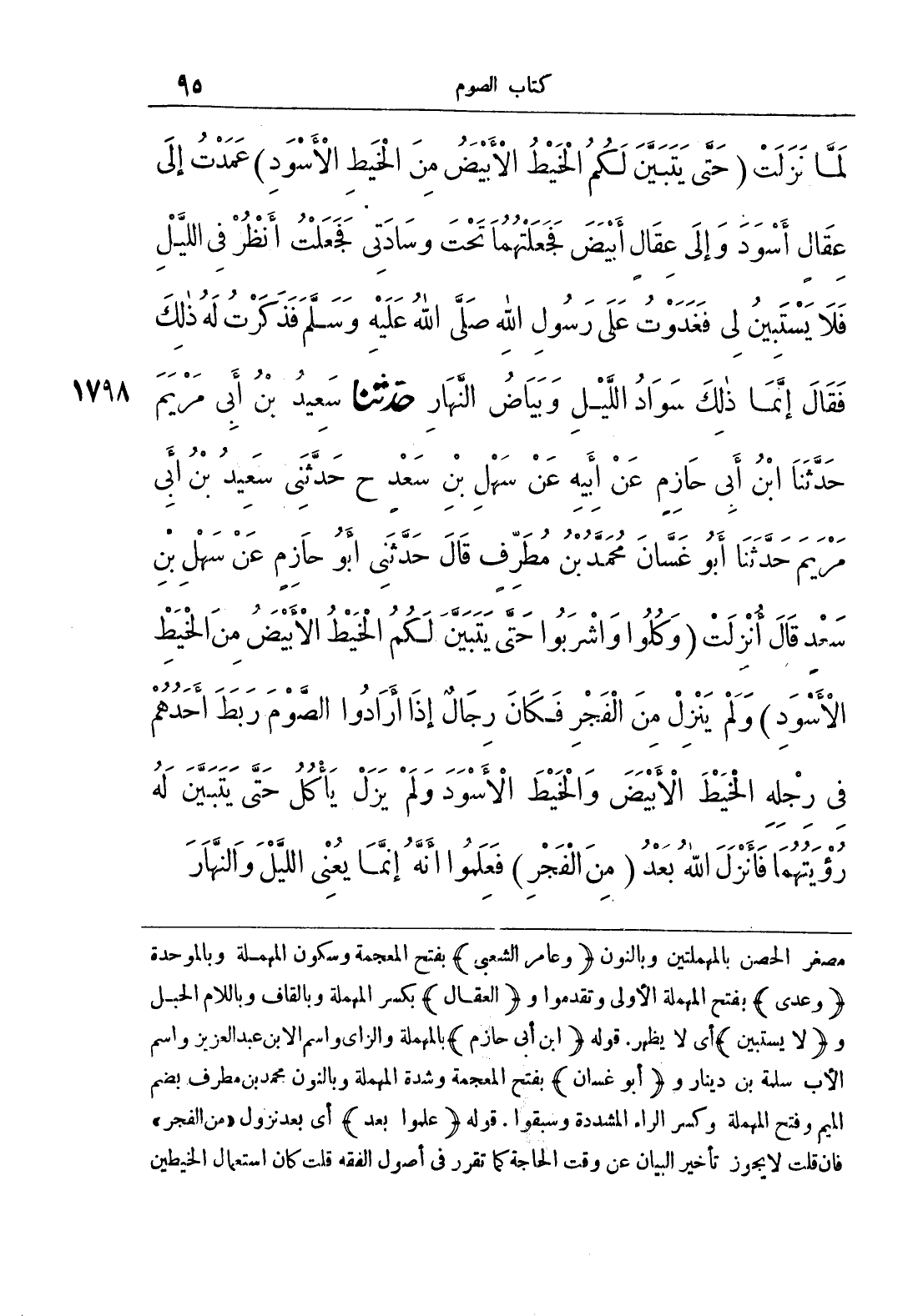 لَمَّا نَزَلَتْ {حَتَّى يَتَبَيَّنَ لَكُمْ الْخَيْطُ الْأَبْيَضُ مِنْ الْخَيْطِ الْأَسْوَدِ}