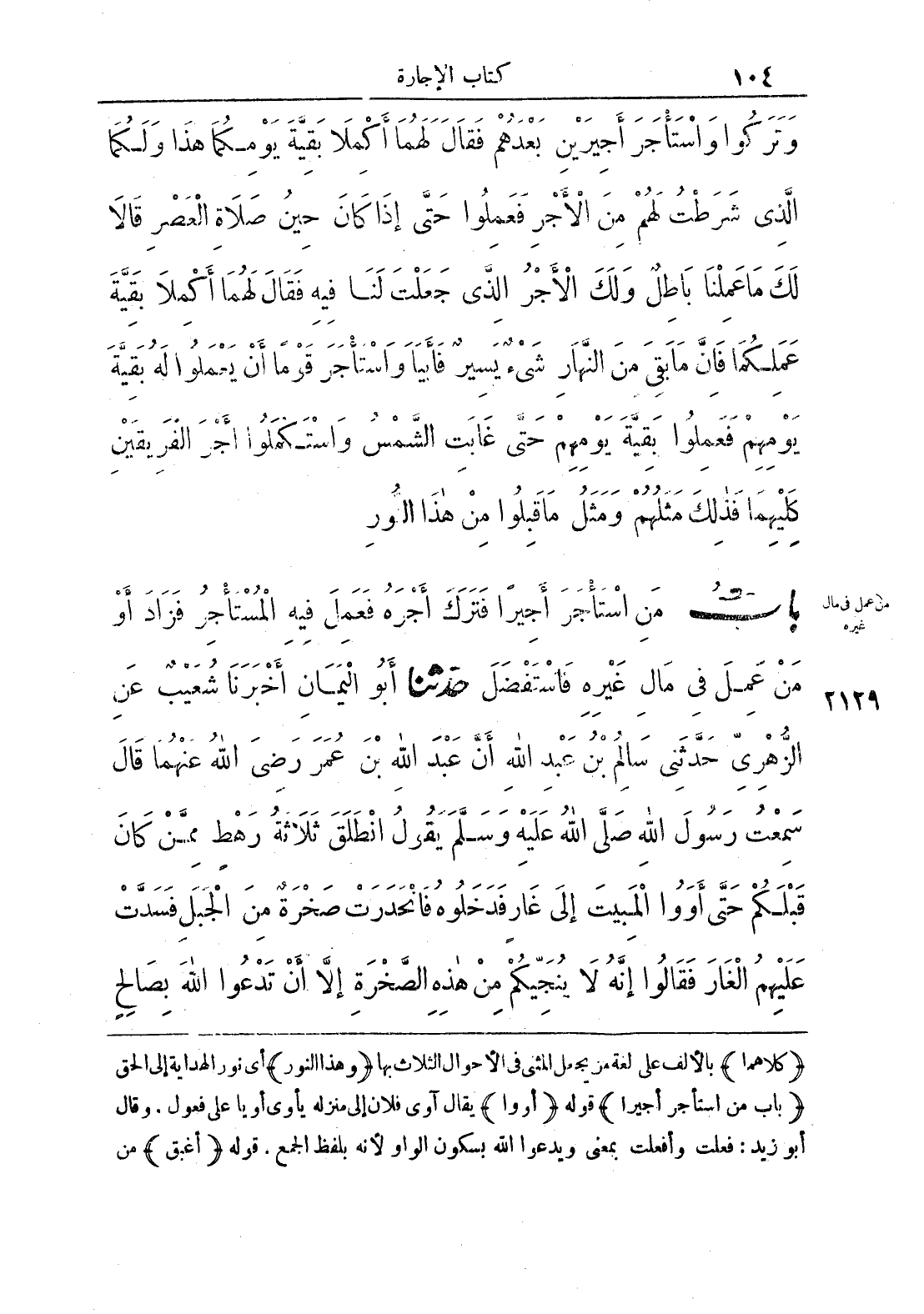 ((كلاهما)) بالألف على غير لغة من يجعل المثنى في الأحوال الثلاث بها ((وهذا النور)) أي نور الهداية إلى الحق ((باب من استأجر أجيرا)) قوله ((أووا)) يقال أوى فلان إلى منزله يأوي أو يا على فعول. وقال أبو زيد: فعلت وأفعلت بمعنى ويدعوا الله بسكون الواو لأنه بلفظ الجمع. قوله ((أغبق)) من