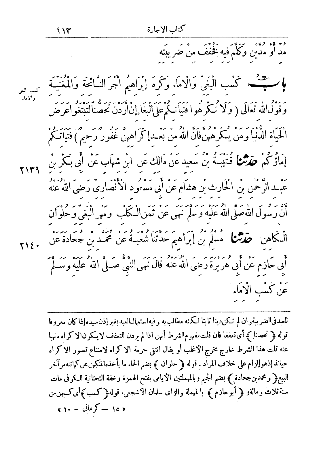 2139 - حَدَّثَنَا قُتَيْبَةُ بْنُ سَعِيدٍ عَنْ مَالِكٍ عَنْ ابْنِ شِهَابٍ عَنْ أَبِي بَكْرِ بْنِ عَبْدِ الرَّحْمَنِ بْنِ الْحَارِثِ بْنِ هِشَامٍ عَنْ أَبِي مَسْعُودٍ الْأَنْصَارِيِّ رَضِيَ اللَّهُ عَنْهُ أَنَّ رَسُولَ اللَّهِ صَلَّى اللَّهُ عَلَيْهِ وَسَلَّمَ نَهَى عَنْ ثَمَنِ الْكَلْبِ وَمَهْرِ الْبَغِيِّ وَحُلْوَانِ الْكَاهِنِ