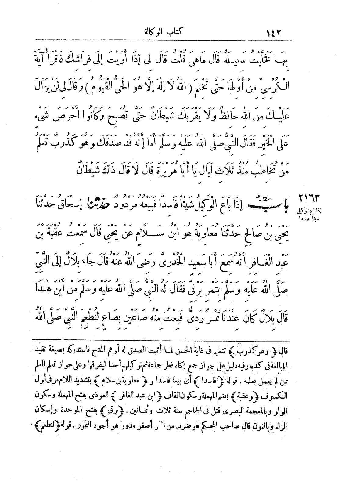 قال ((وهو كذوب)) تتميم في غاية الحسن لما أثبت الصدق له أو هم المدح فاستدركه بصيغة تفيد المبالغة في كذبه وفيه دليل على جواز جمع زكاة فطر جماعية ثم توكيلهم أحدا ليفرقها وعلى جواز تعلم العلم ممن لم يعمل بعلمه. قوله ((فاسدا)) أي بيعا فاسدا و ((معاوية بن سلام)) بتشديد اللام مر في أول الكسوف ((وعقبة)) بضم المهملة وسكون القاف ((ابن عبد الغافر)) العوذي بفتح المهملة وسكون الواو وبالمعجمة البصري قتل في الجماجم سنة ثلاث وثمانين. ((برني)) بفتح الموحدة وإسكان الراء وبالنون قال صاحب المحكم هو ضرب من التمر أصفر مدور هو أجود التمور، قوله ((لنطعم))