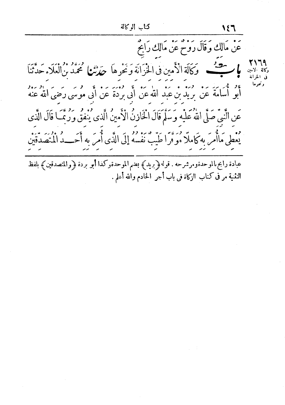 2169 - حَدَّثَنَا مُحَمَّدُ بْنُ الْعَلَاءِ حَدَّثَنَا أَبُو أُسَامَةَ عَنْ بُرَيْدِ بْنِ عَبْدِ اللَّهِ عَنْ أَبِي بُرْدَةَ عَنْ أَبِي مُوسَى رَضِيَ اللَّهُ عَنْهُ