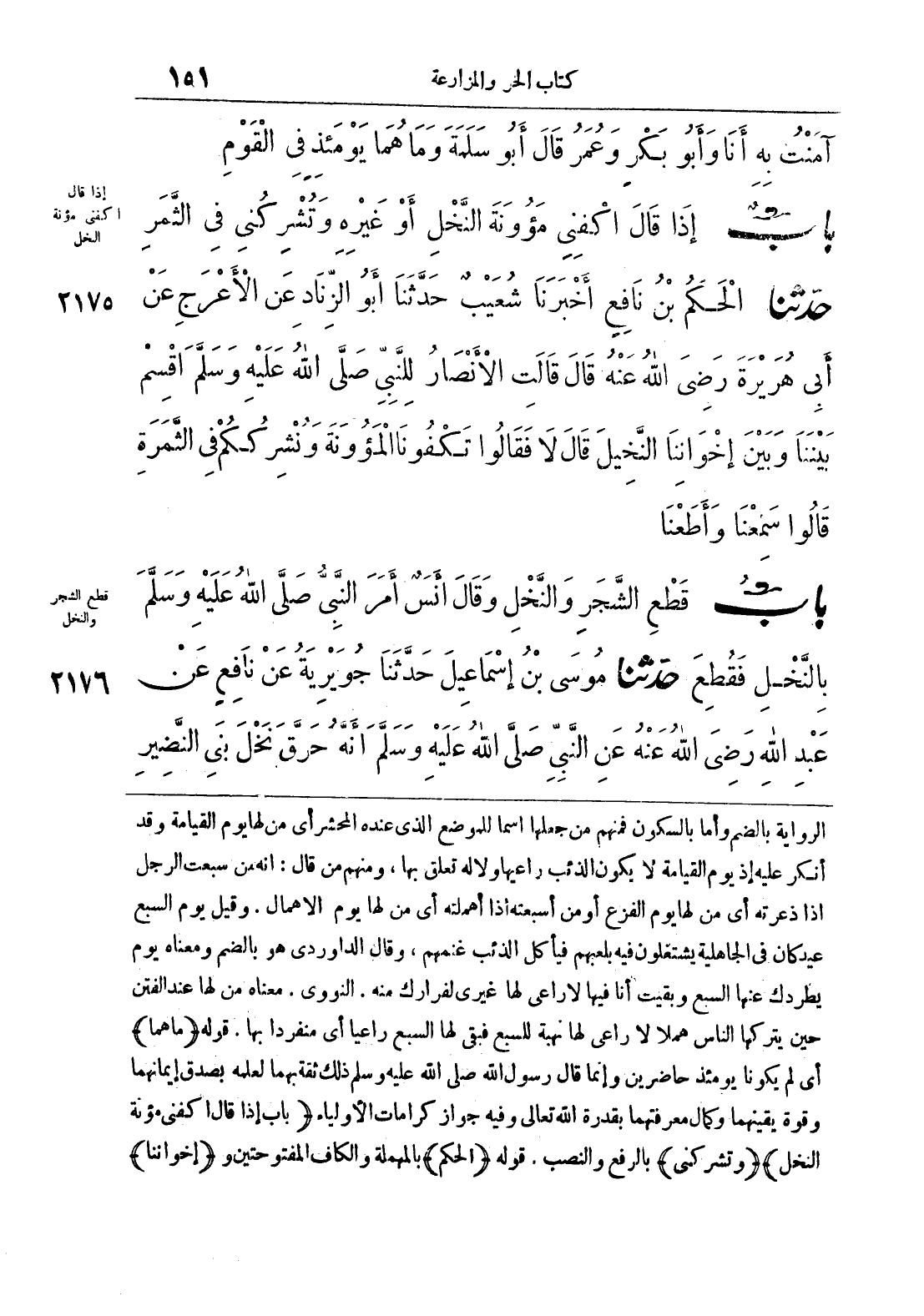 2176 - حَدَّثَنَا مُوسَى بْنُ إِسْمَاعِيلَ حَدَّثَنَا جُوَيْرِيَةُ عَنْ نَافِعٍ عَنْ عَبْدِ اللَّهِ رَضِيَ اللَّهُ عَنْهُ عَنْ النَّبِيِّ صَلَّى اللَّهُ عَلَيْهِ وَسَلَّمَ أَنَّهُ حَرَّقَ نَخْلَ بَنِي النَّضِيرِ