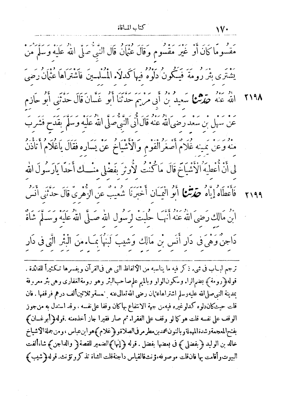 2198 - حَدَّثَنَا سَعِيدُ بْنُ أَبِي مَرْيَمَ حَدَّثَنَا أَبُو غَسَّانَ قَالَ حَدَّثَنِي أَبُو حَازِمٍ عَنْ سَهْلِ بْنِ سَعْدٍ رَضِيَ اللَّهُ عَنْهُ قَالَ