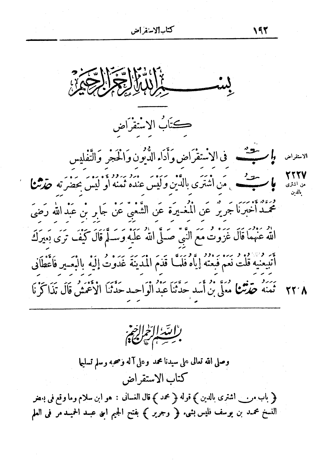 ((باب من اشترى بالدين)) قوله ((محمد)) قال الغساني: هو ابن سلام وما وقع في بعض النسخ محمد بن يوسف فليس بشيء ((وجرير)) بفتح الجيم ابن عبد الحميد مر في العلم