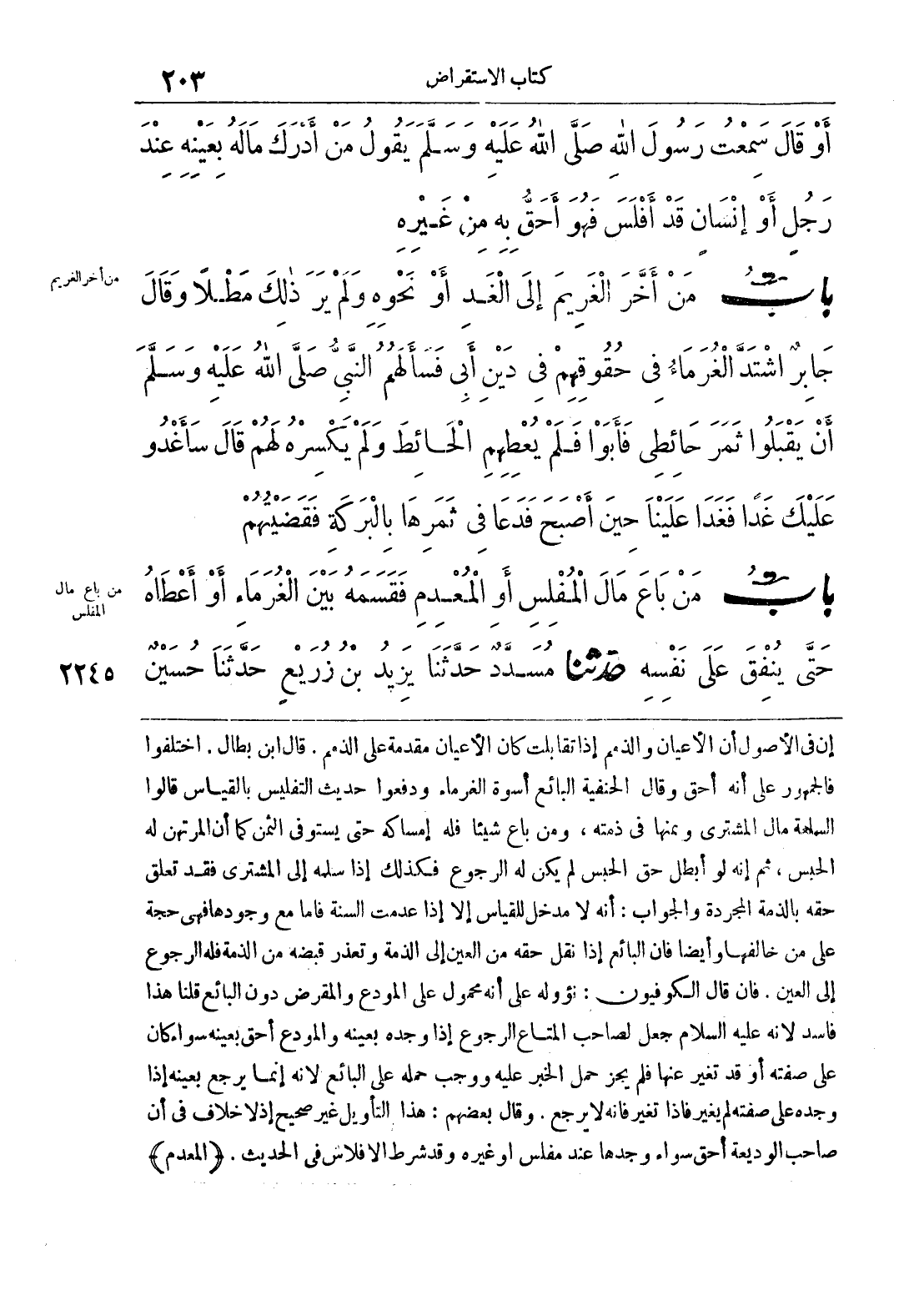 بَاب مَنْ بَاعَ مَالَ الْمُفْلِسِ أَوْ الْمُعْدِمِ فَقَسَمَهُ بَيْنَ الْغُرَمَاءِ أَوْ أَعْطَاهُ حَتَّى يُنْفِقَ عَلَى نَفْسِهِ