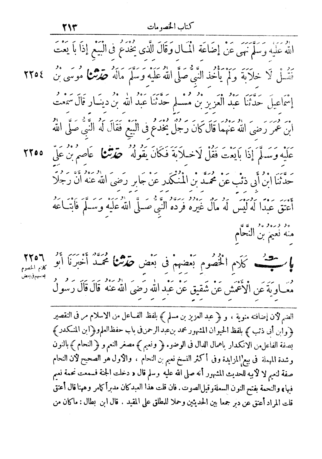 2256 - حَدَّثَنَا مُحَمَّدٌ أَخْبَرَنَا أَبُو مُعَاوِيَةَ عَنْ الْأَعْمَشِ عَنْ شَقِيقٍ عَنْ عَبْدِ اللَّهِ رَضِيَ اللَّهُ عَنْهُ قَالَ قَالَ رَسُولُ